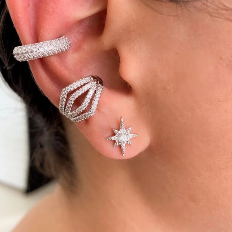 Помощник925 пробы Серебряная Ушная манжета для женщин 1 шт. очаровательный ромбовидный циркониевый зажим на серьги без пирсинга ювелирные изделия