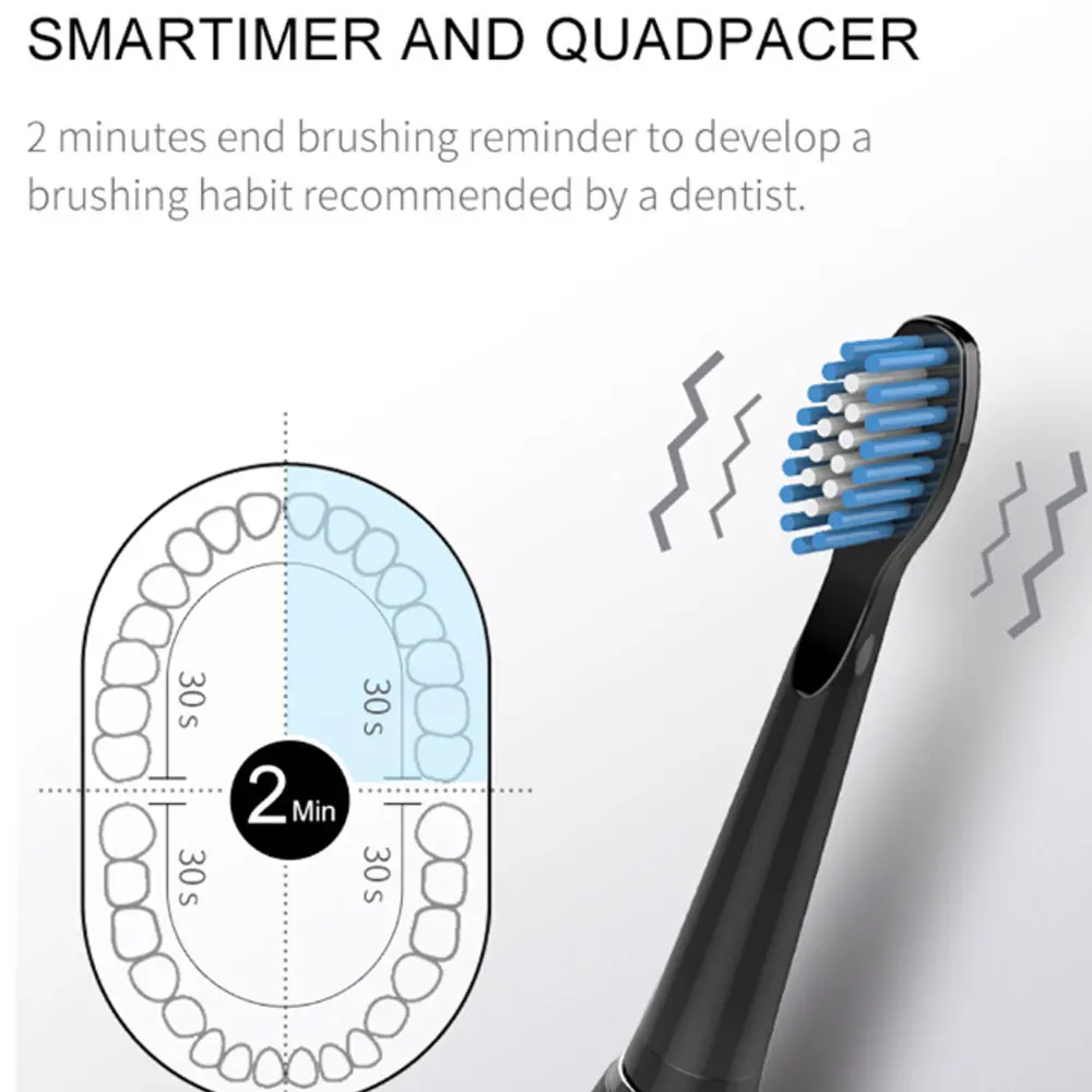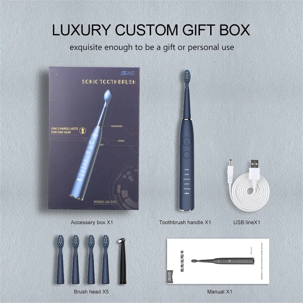 Электрическая зубная щетка SEAGO, перезаряжаемая, с 4 насадками и 1 межзубной щеткой, SG575tool