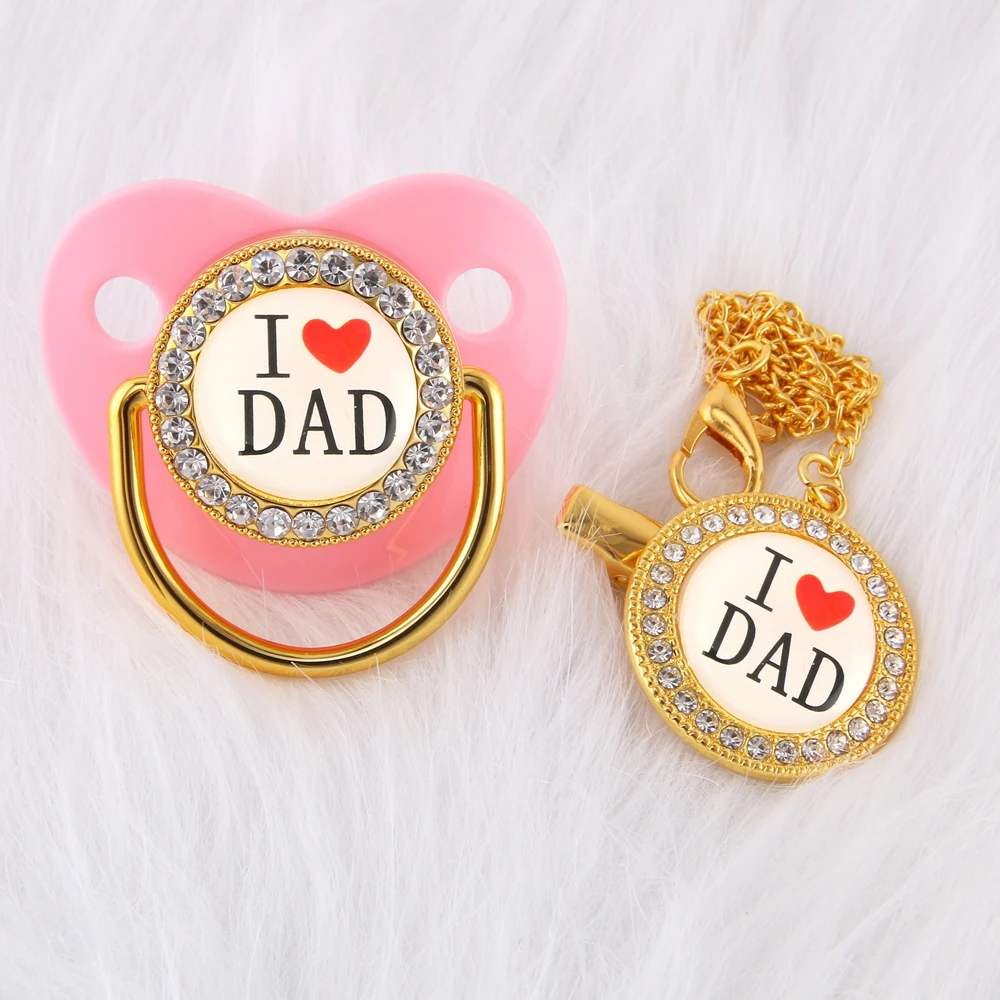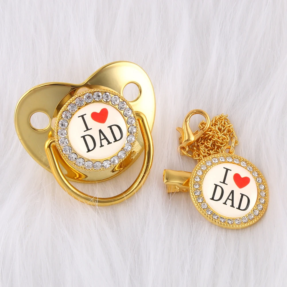 Роскошные Кристаллы Бриллиантовая Золотая детская пустышка для младенцев манекен Ортодонтические Bling соски цепь я люблю папу ребенка соски держатель зажим