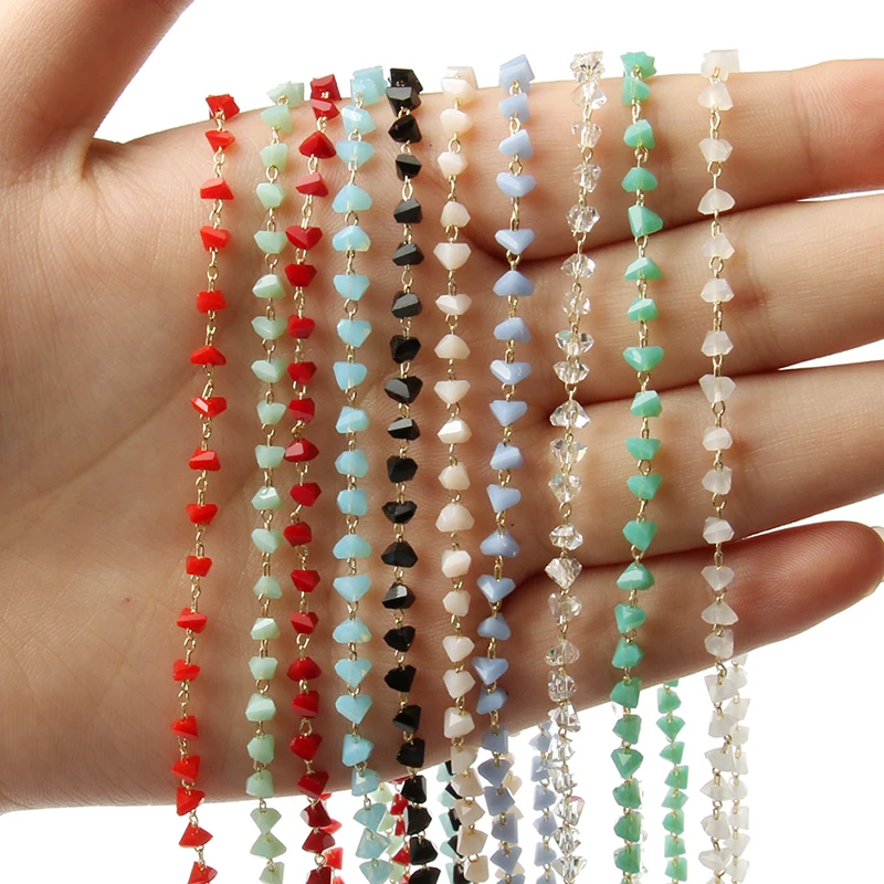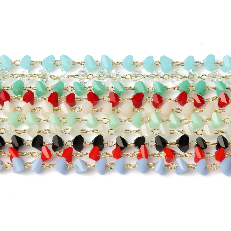 1 метр Позолоченные проволоки хрустальные треугольные бусины цепи для самостоятельного изготовления ювелирных изделий браслет ожерелье серьги завернутые четки цепиПосылка: 1 м/лот