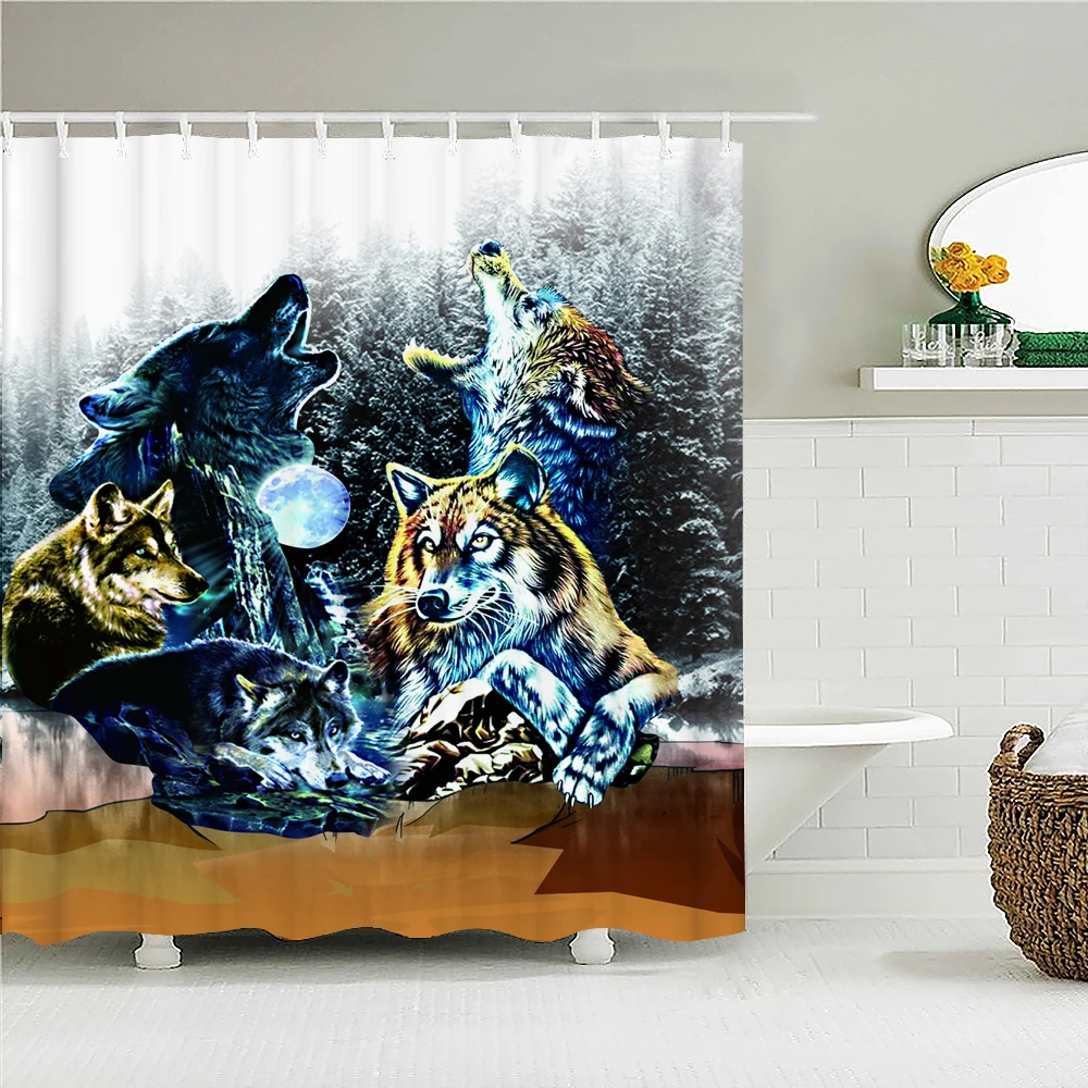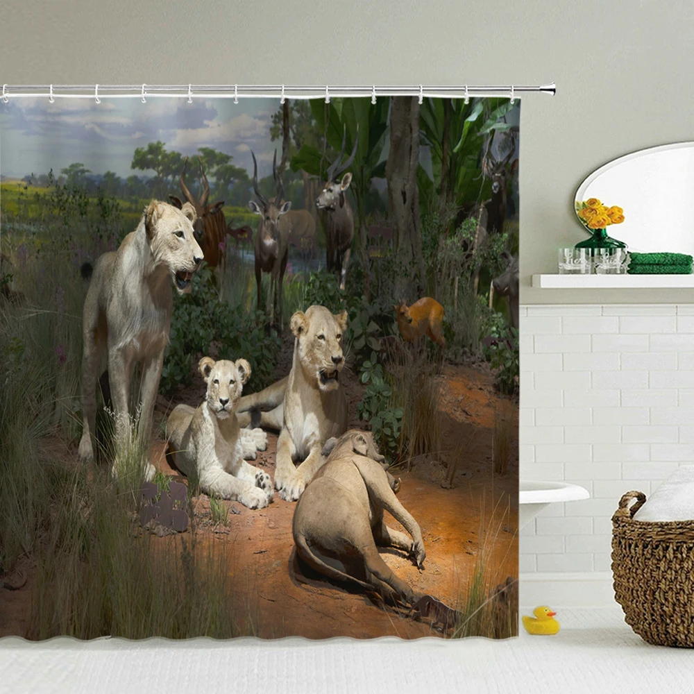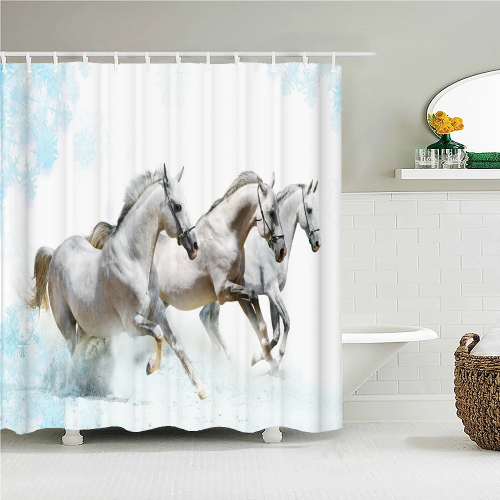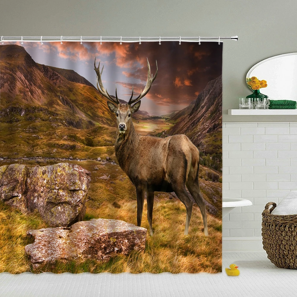Шторы для душа с оленями и крючками, водонепроницаемые 3d занавески в ванную комнату с рисунком лося, моющиеся, с рисунком