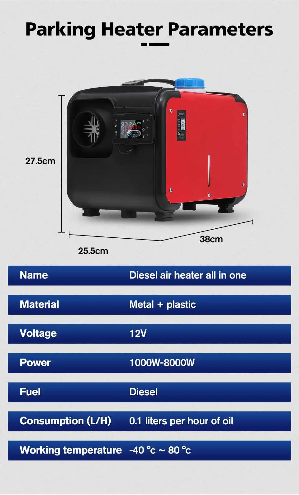 Наименование: Дизельный подогреватель воздуха все в одном 12 В 8 кВт