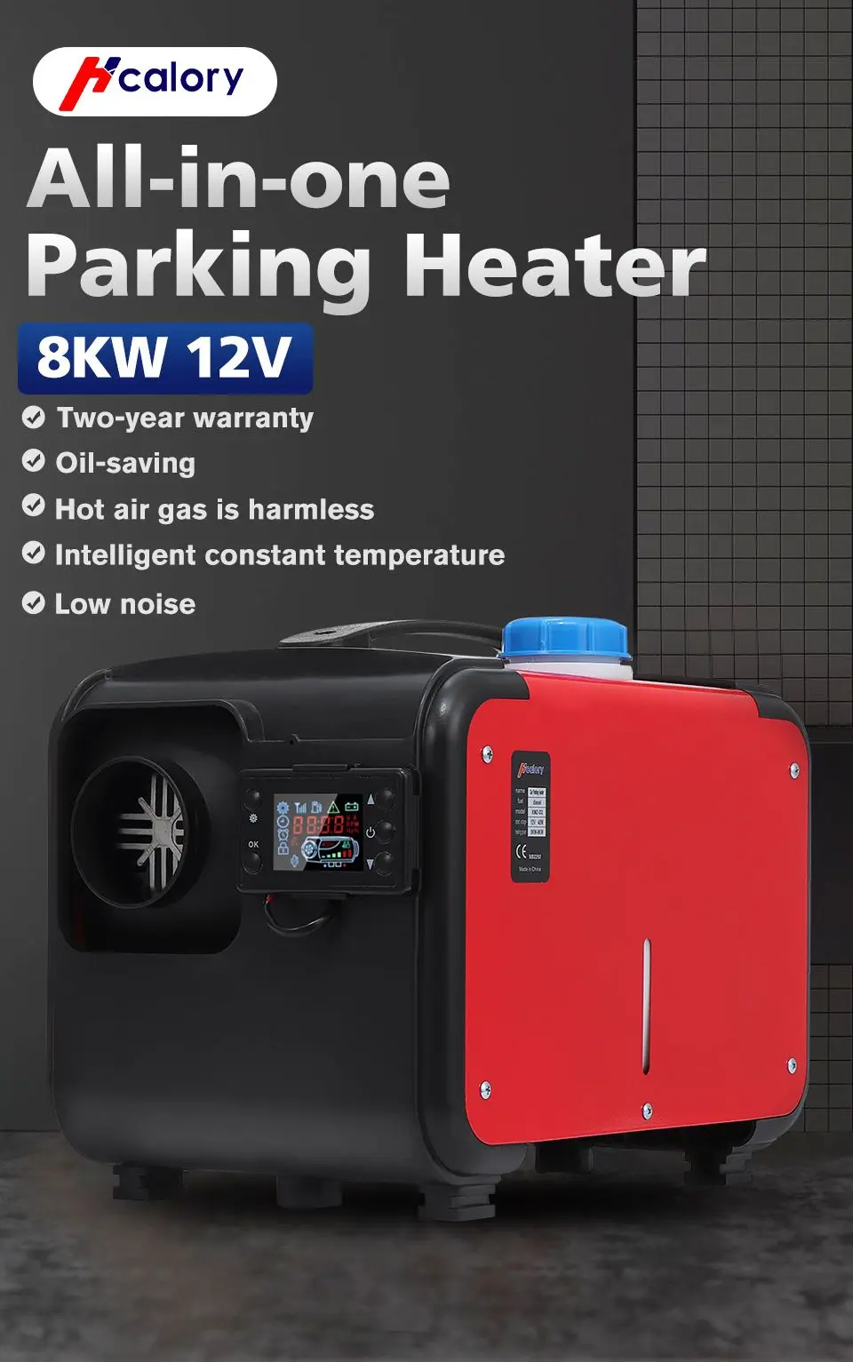 Автомобильный обогреватель Hcalory, все в одном, 8000 Вт, воздушный дизельный Обогреватель, красный, 8 кВт, 12 В, автомобильный обогреватель с одним отверстием для грузовиков и ЖК-выключатель, новинка 2020