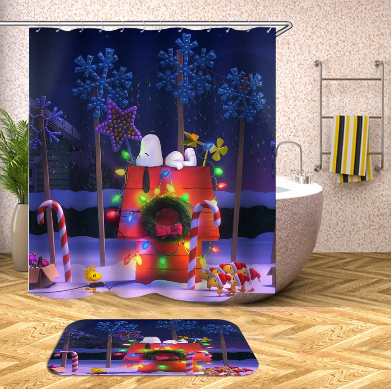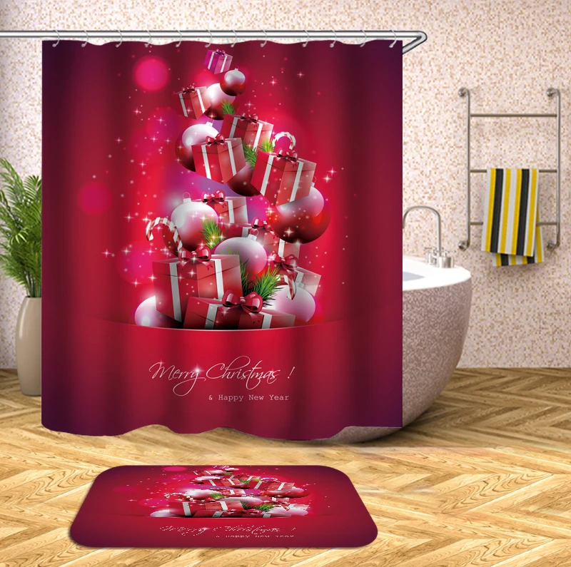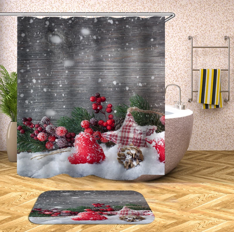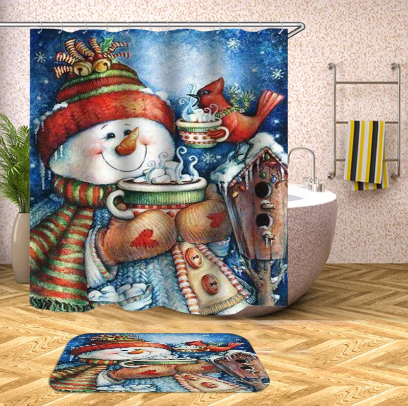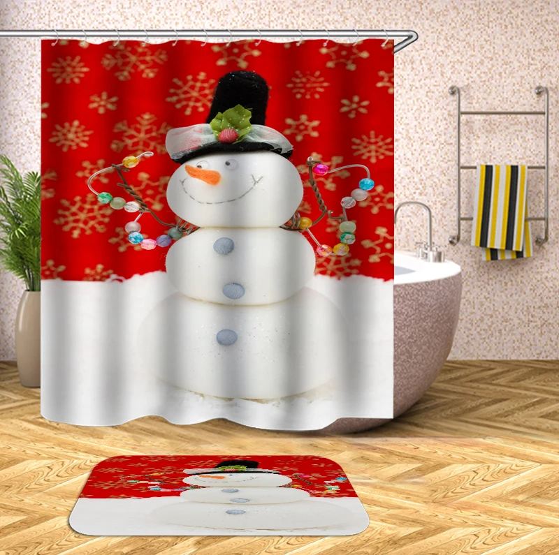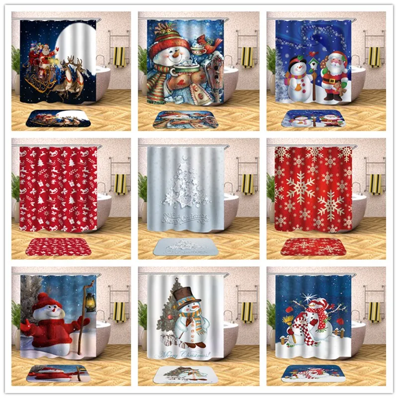 Рождественские занавески для ванной, домашний декор, зимняя Снежинка, снеговик, Санта Клаус, набор для ванной с душевой занавеской, водонепроницаемый полиэстер