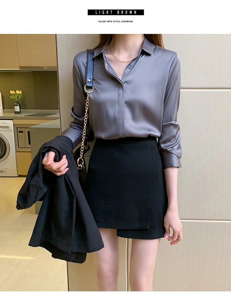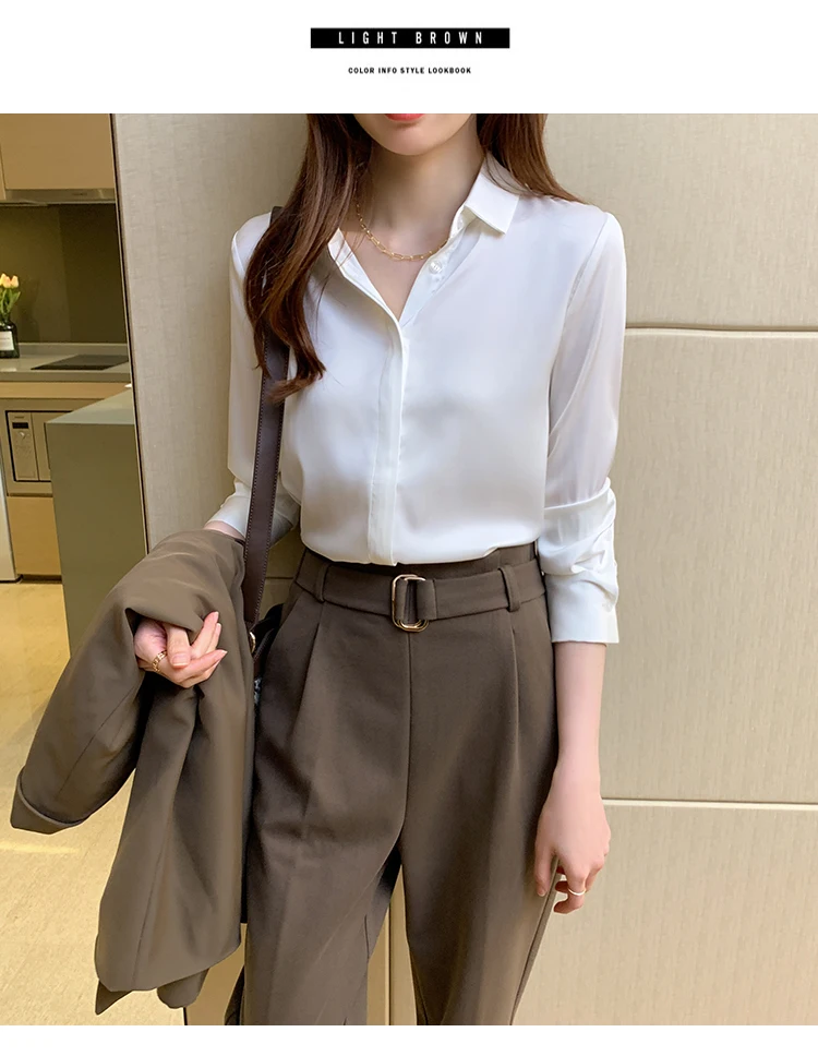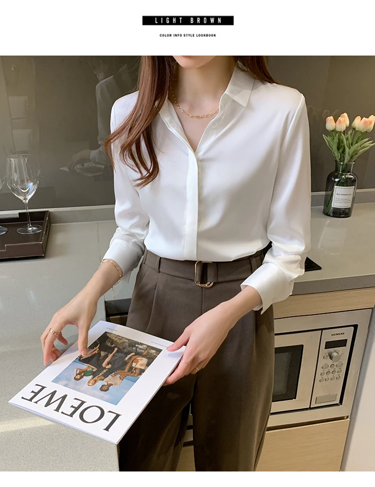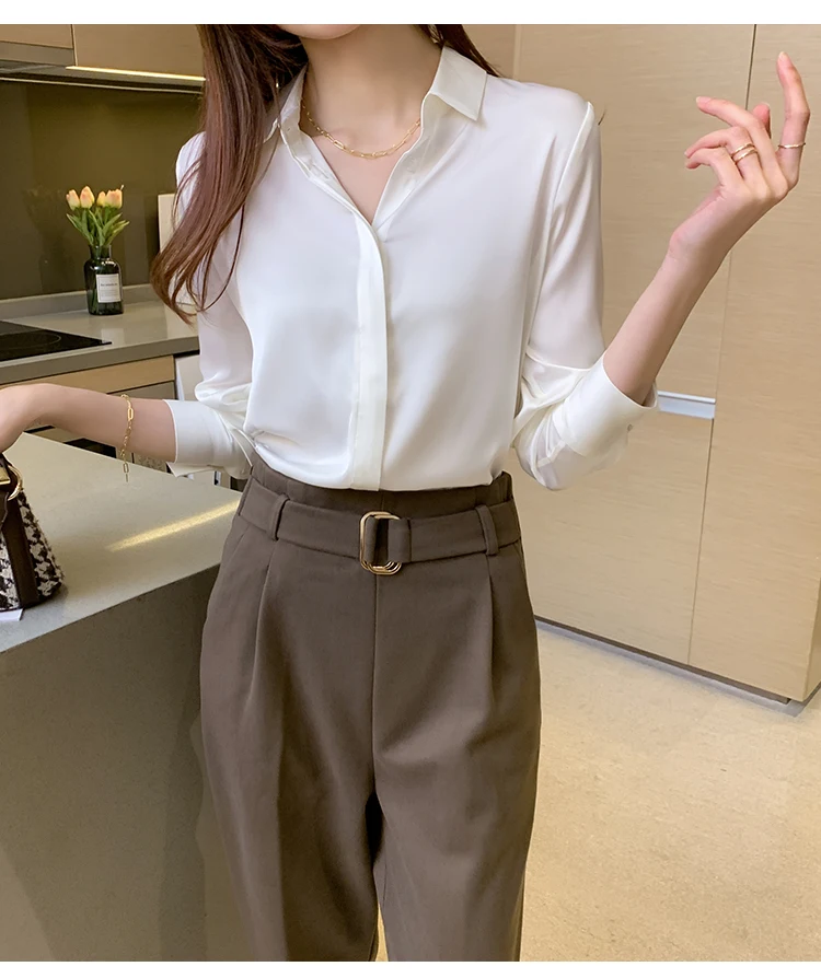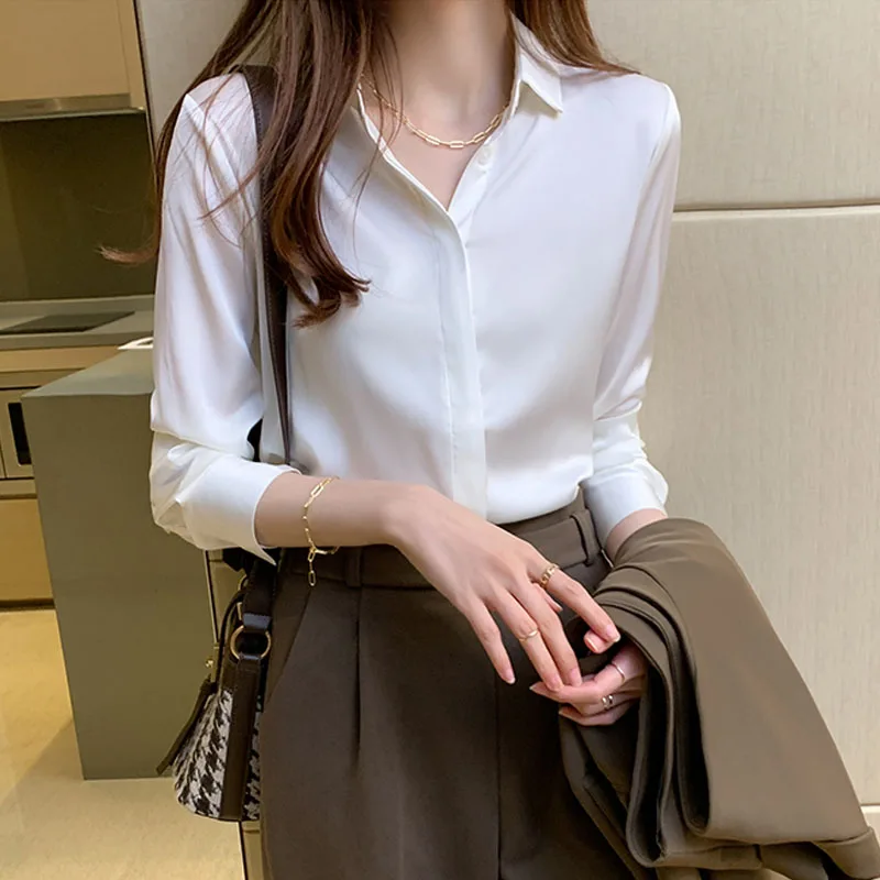 Осенняя модная атласная шелковая рубашка на пуговицах, винтажная блузка для женщин, белая женская Свободная уличная рубашка с длинным рукавом, блуза 12084