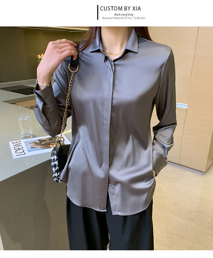 Женская атласная рубашка с отложным воротником, Повседневная шифоно...