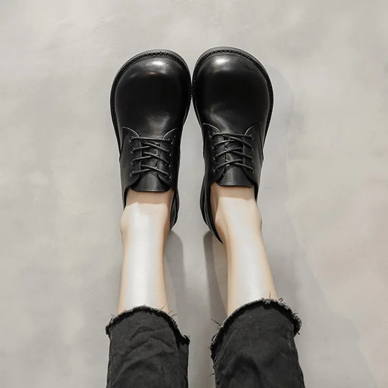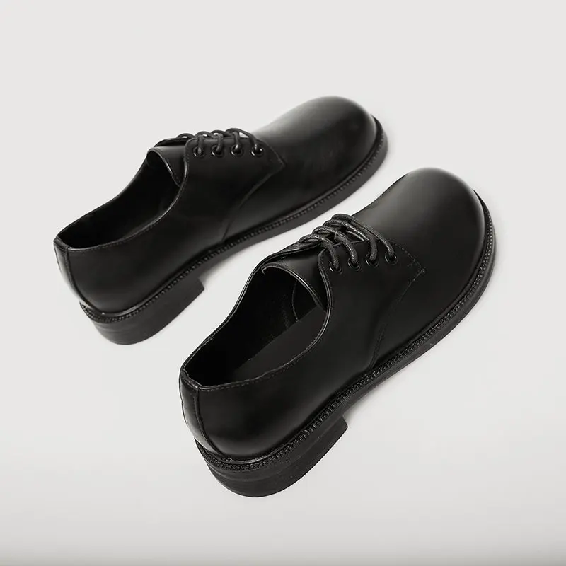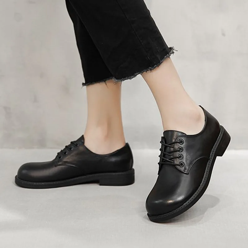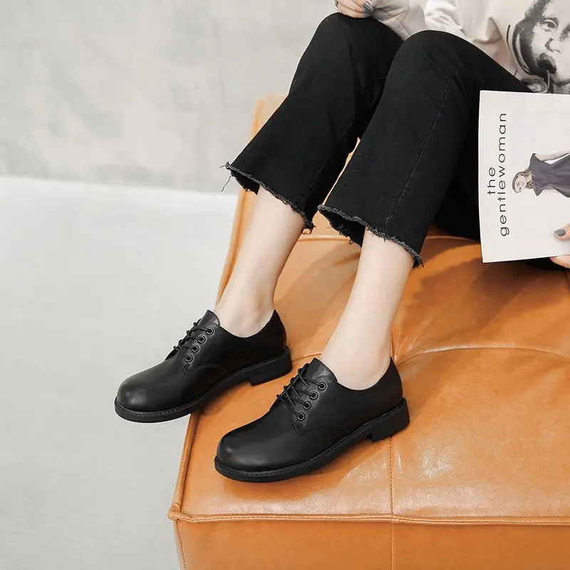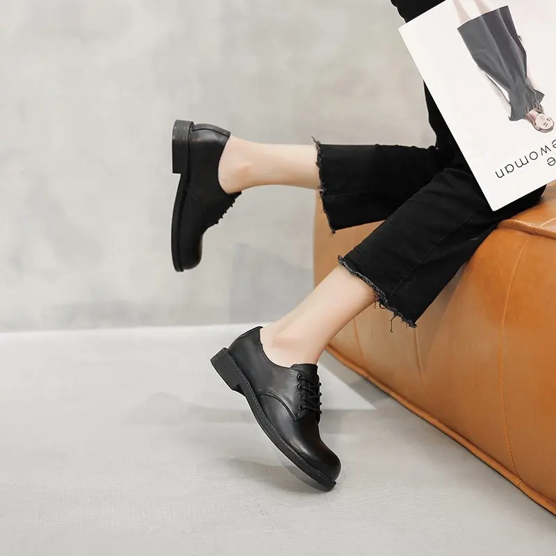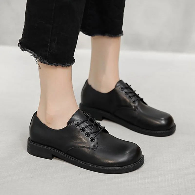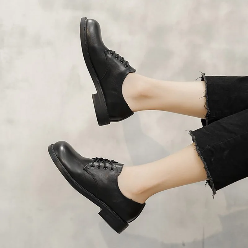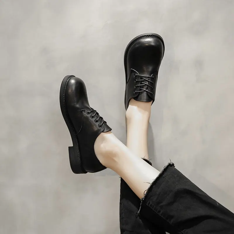 Женские туфли оксфорды с круглым носком, кожаные туфли на шнуровке, черные туфли Лолиты, броги на низком каблуке, женская обувь, весна-осень, 8807 г
