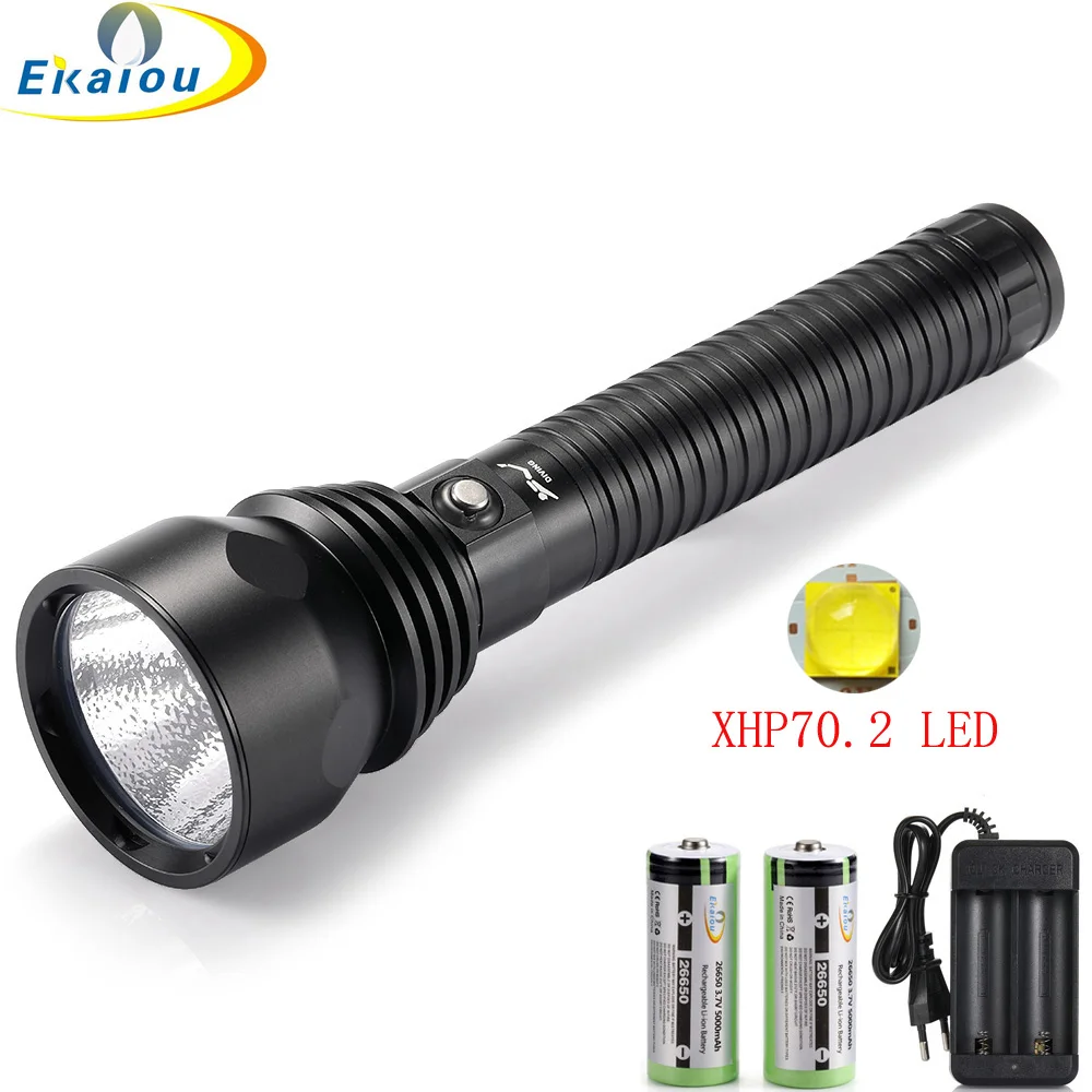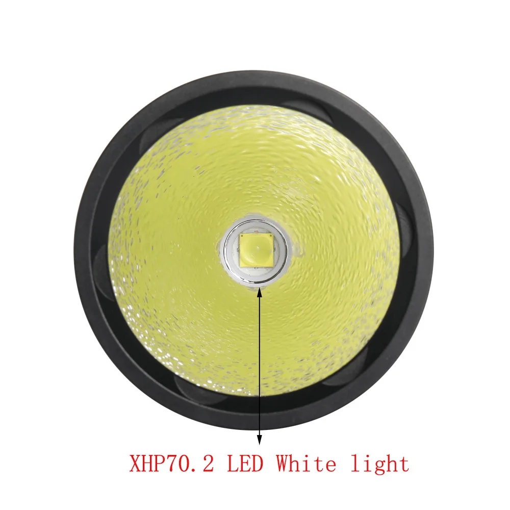 【6000лм фонарик для дайвинга 】надежный фонарик для дайвинга является основным компаньоном для подводных погружений. Оснащен XHP70.2 светодиодный лампы с максимальным выходом 6000 люмен и 100000 часов светодиодный длительный срок службы. С прочной конструкцией и яркостью, держащей этот светильник для дайвинга в руке, и вы знаете, что держите что-то важное.【Надежный и практичный 】 изготовлен из высококачественного алюминиевого сплава, окисления и антиизноса, термоэлектрической изоляции медной подложки-быстро выводит тепло, генерируемое светодиодный.【Широкое использование во многих случаях 】 профессиональный подводный фонарик для подводного плавания и подводного плавания. Кроме того, он используется для кемпинга, плавания, пеших прогулок, пеших прогулок, охоты, рыбалки и многого другого.Параметры продукта【Модель: DX11[Цвет товара]: черный[Светильник источник]: XHP70.2 или светодиодный срок службы 100000 часов[Белый светильник с цветовой температурой]: 6000K-6500K[Температура желтого цвета]: 3000K-3500K[Глубина погружения]: 100-200 метров[Диапазон освещения]: 300 м[Материал изделия]: авиационный магниевый алюминий 6061 алюминиевый сплав[Схема]: 8,4 в Интеллектуальная цифровая схема с широким напряжением, максимальная мощность 6000 люмен[Положение шестерни]: один щелчок: яркий свет → закрыть, длительное нажатие в бесконечном режиме, двойной щелчок быстро: flashing→ SOS[Обработка поверхности]: жесткое анодирование [Люмен]: 6000LM[Тип переключателя]: Центральный водонепроницаемый переключатель[Размер изделия]: 65 мм (диаметр головки) x253мм (длина) x35мм (диаметр хвоста)[Отражающая чашка]: оранжевый Отражатель из алюминиевого сплава[Применимый аккумулятор]: 2x26650Посылка включает в себя:Посылка:1xXH70.2 светодиодный фонарик для дайвинга2 батареи 26650 5000 мАч1x зарядное устройство1 х ручной ремешок