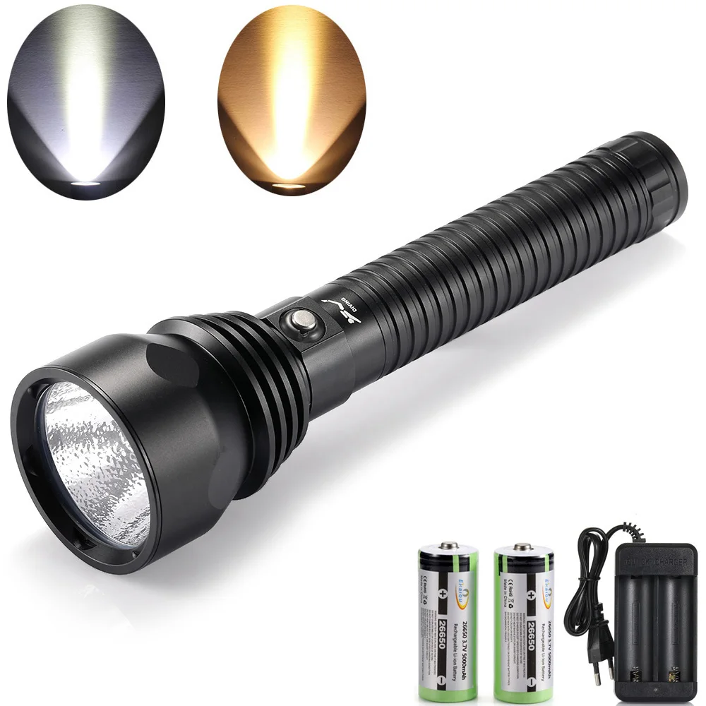 Профессиональный Мощный светодиодный фонарик XHP70.2 для дайвинга с белымжелтым свесветильник, 150 м, подводный водонепроницаемый фонарь для дайвинга, комплект для кемпинга
