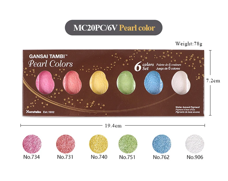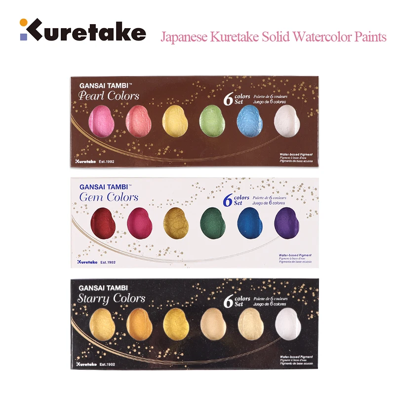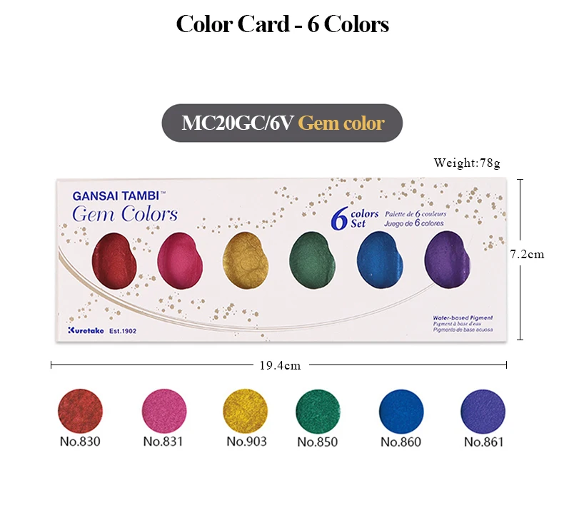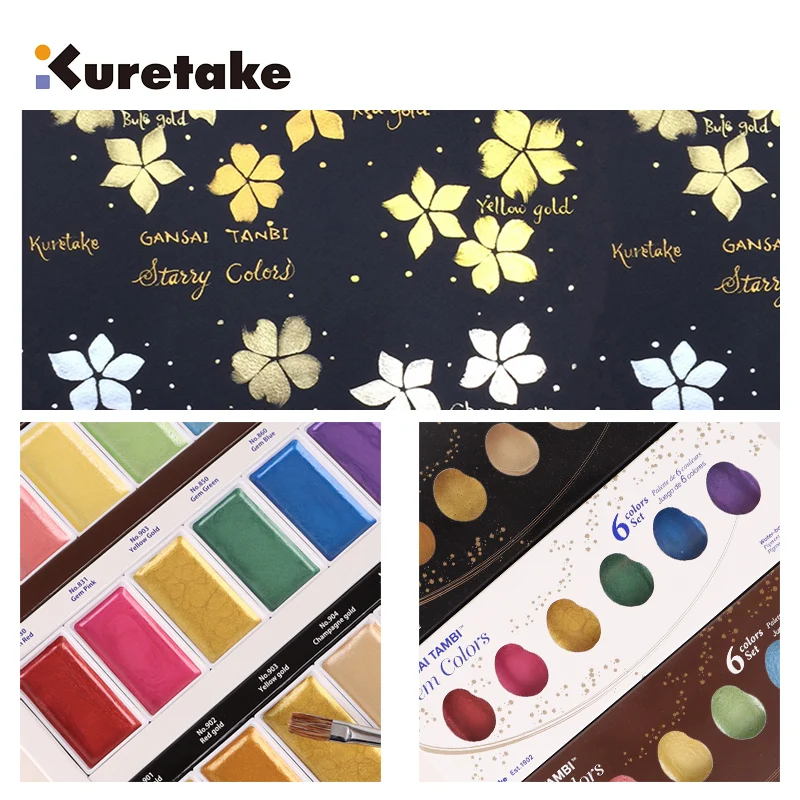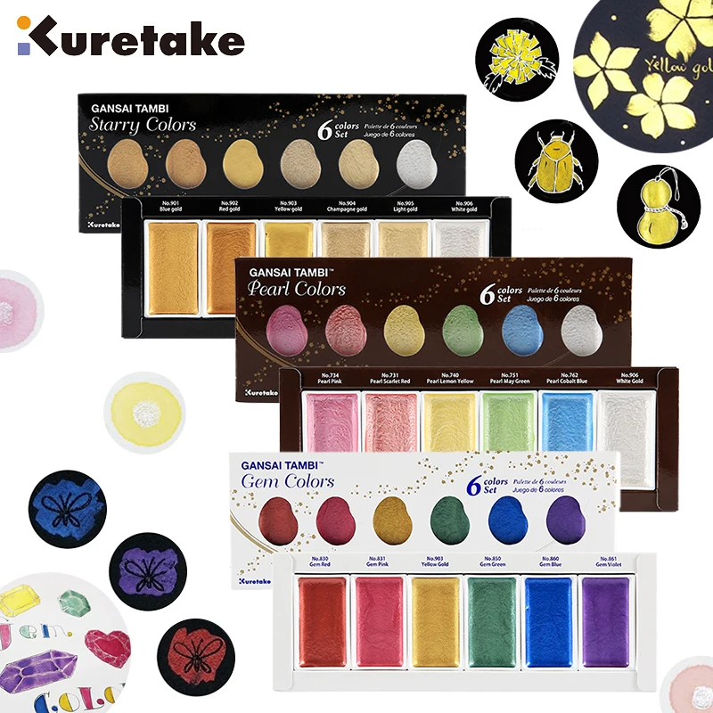 Kuretake MC20GC-6V GANSAI цилиндрическая краска звездного цветажемчугдрагоценный камень 6 цветов цвет s металликперламутровый цвет краска