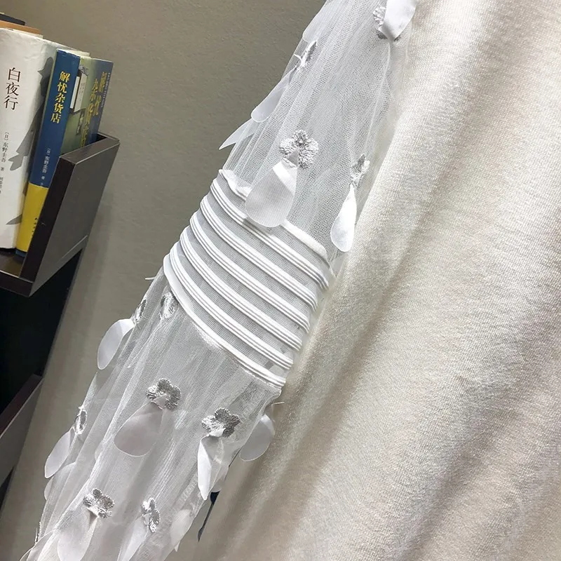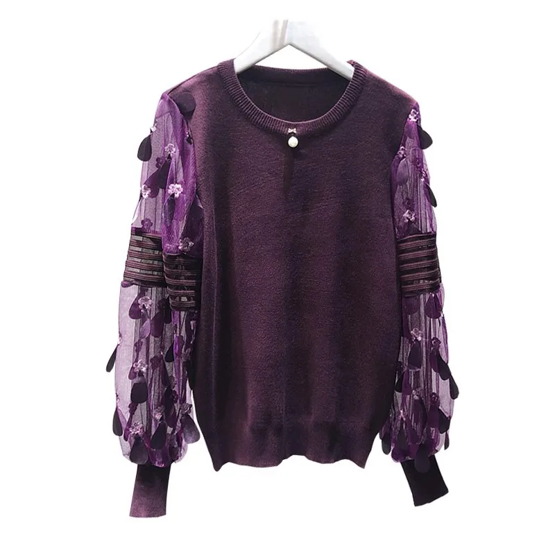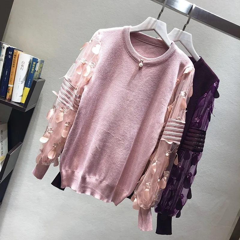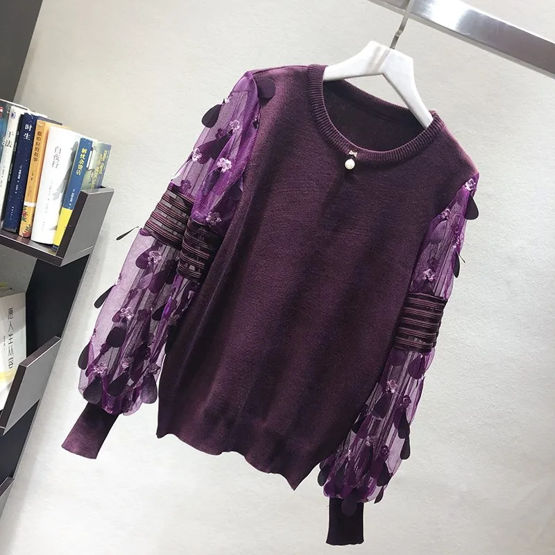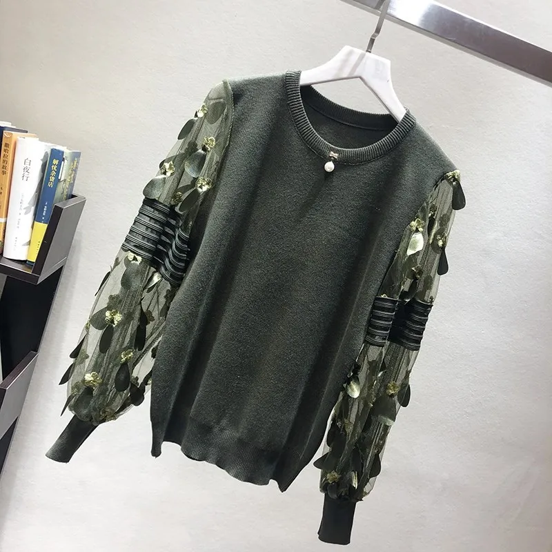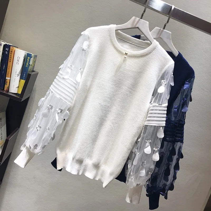Осенне-весенние женские пуловеры, трикотажная одежда с круглым вырезом, сетчатые рукава с вязанными топами Aqqliques, свободная модная верхняя одежда, костюм