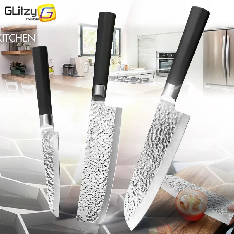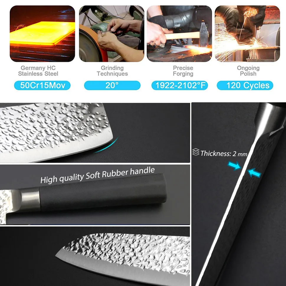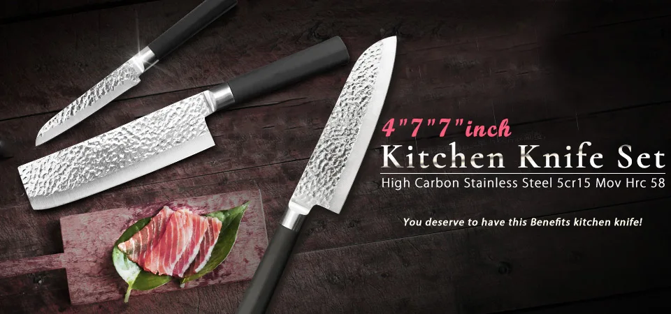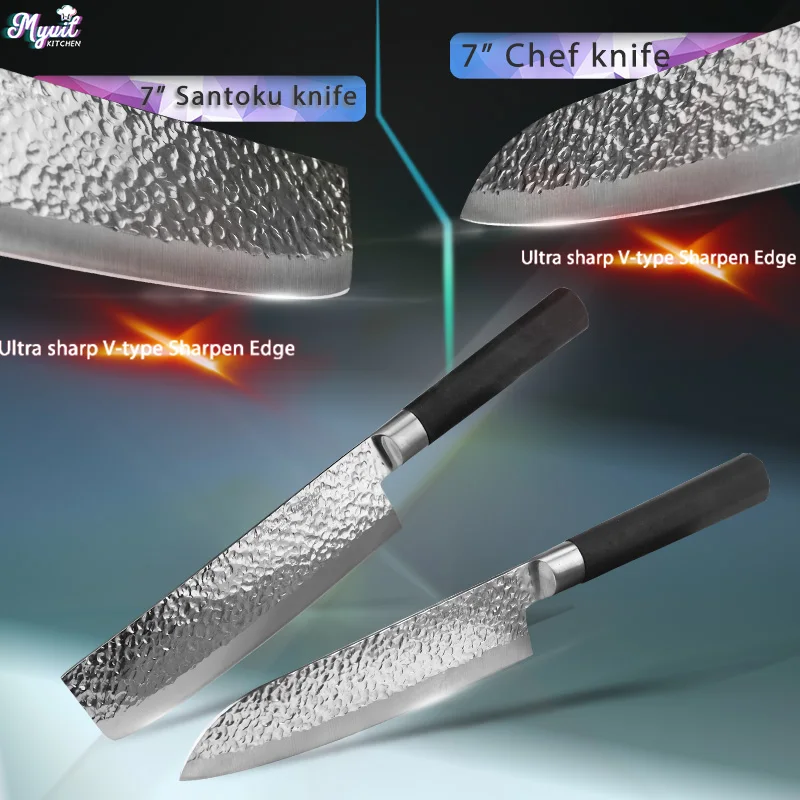Кухонные ножи 4 7 7 дюймов ножи шеф-повара 7Cr17 440C из нержавеющей стали Молоток дизайн утилита Slicer Santoku мясо овощерезка набор