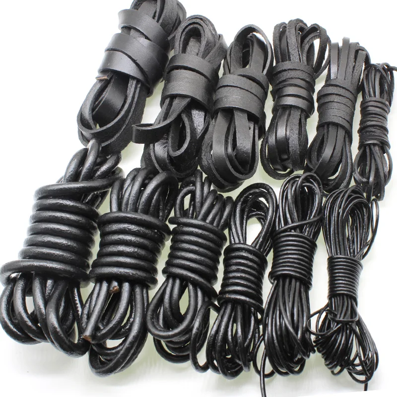 Шнур из натуральной кожи черного цвета для изготовления ювелирных изделий сделай сам, плоский круглый шнур из кожи 2, 3, 4, 5, 6, 8 мм, подходит для ожерелий, браслетов