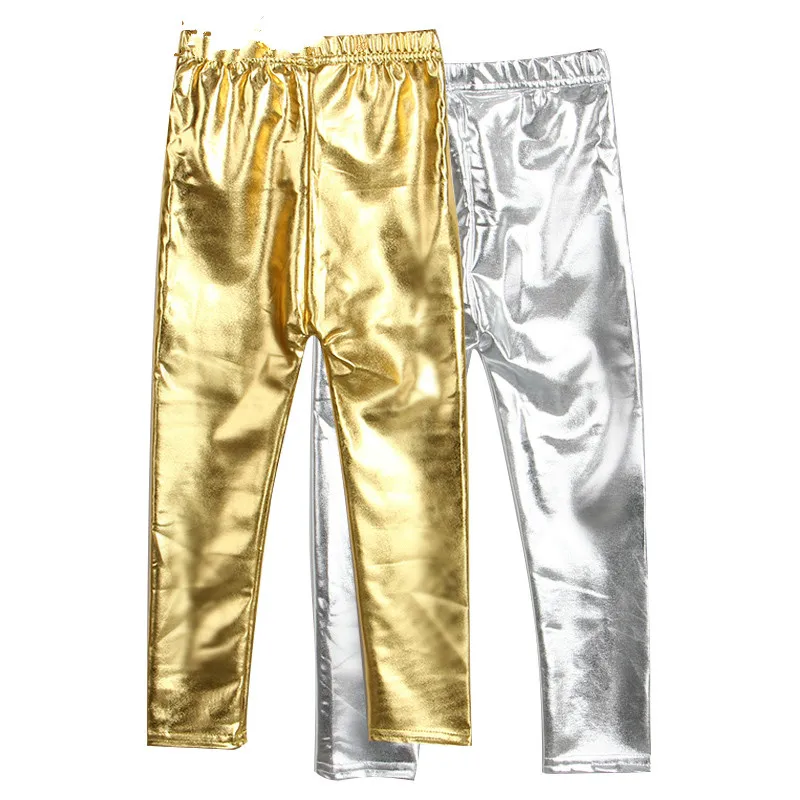 Леггинсы для девочек, модные блестящие металлические штаны для мале...