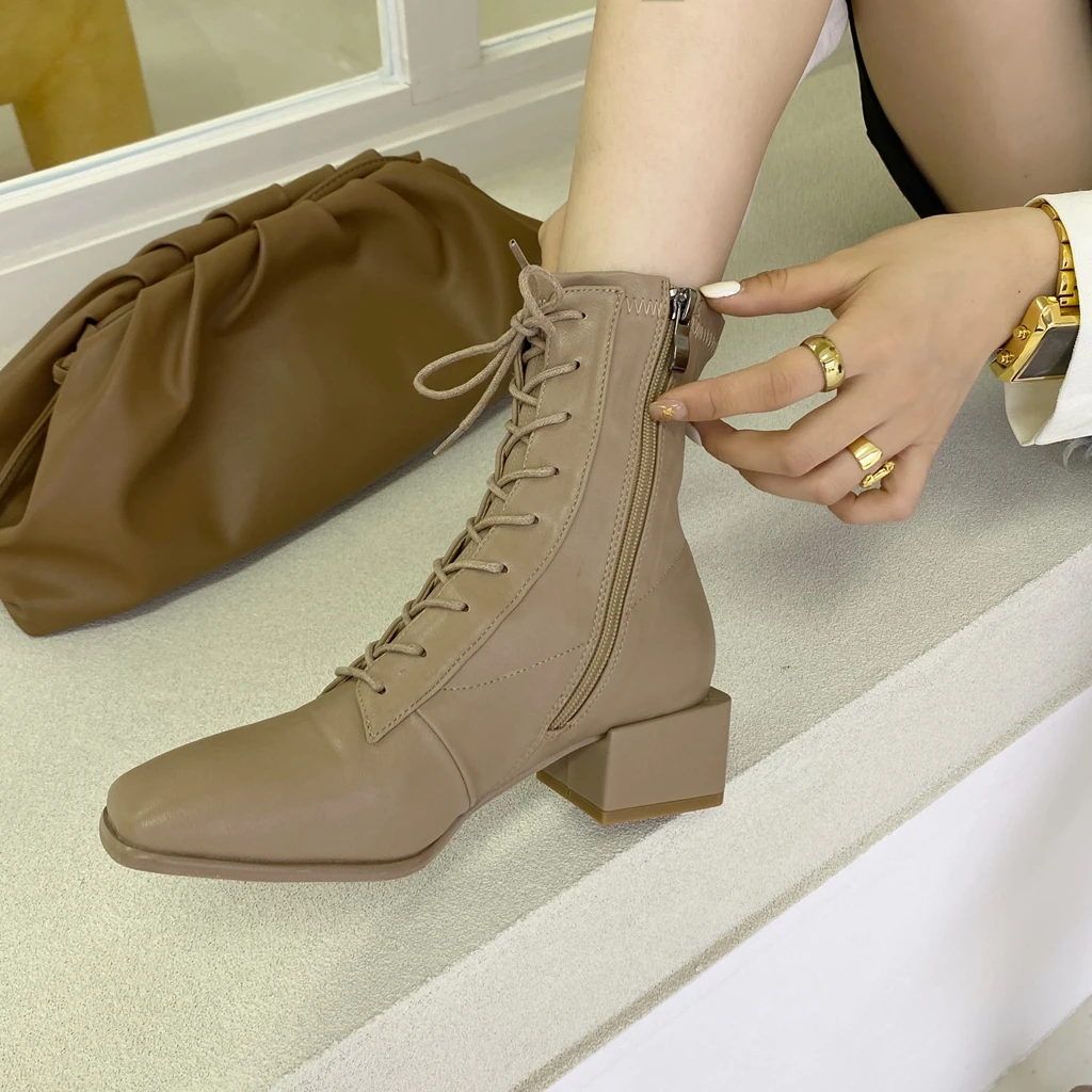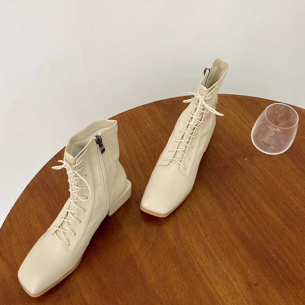 Женские мотоциклетные ботинки, черные ботильоны на толстом каблуке, без застежки, с квадратным носком, осень
