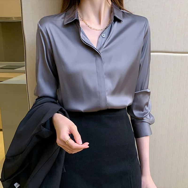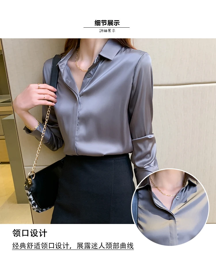 Женская атласная рубашка с отложным воротником, Повседневная шифоно...