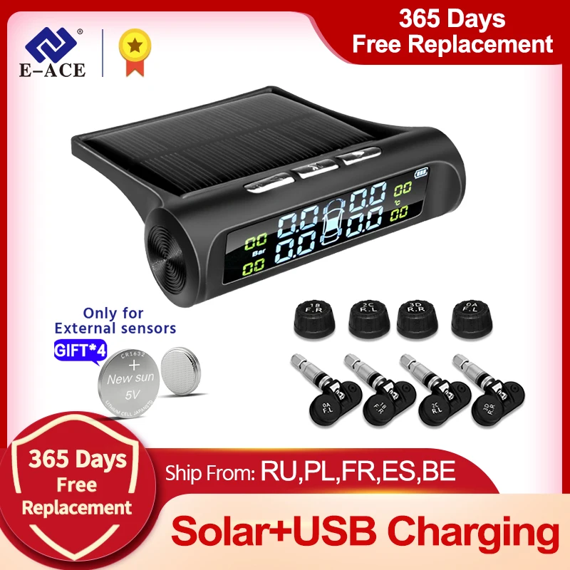 E-ACE система контроля давления в шинах, система контроля давления в шинах TPMS на солнечной батарее с цифровым дисплеем