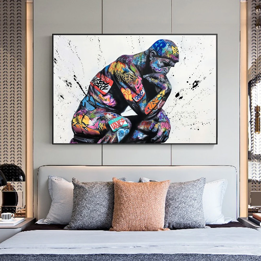 Thinker Man граффити искусство портрет мышления холст картины для ...