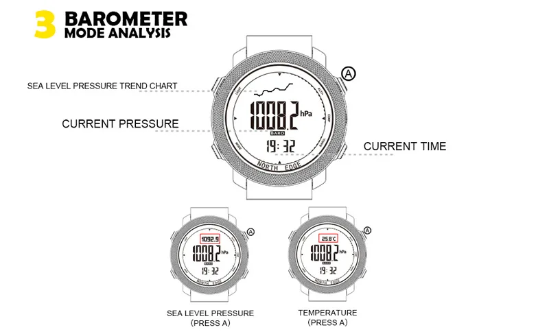 Часы NORTH EDGE мужские с альтиметром, барометром и компасом, водон...