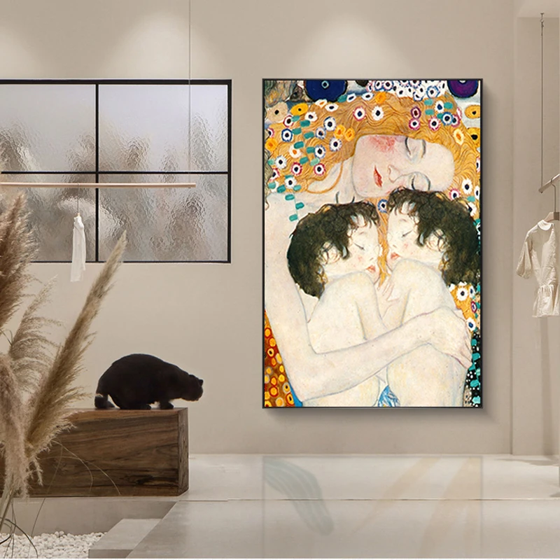 Знаменитая картина Мама Любовь Близнецы ребенок Густав Климт Картина на холсте постеры и печать Настенная картина для декора гостиной