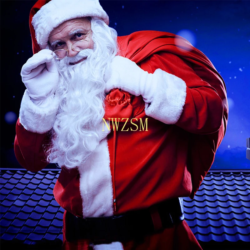 Рождественский костюм для взрослых из бархатной кожи, костюм Санта Клауса для косплея, костюм для Рождественский реквизит для вечеринок, 5 шт.