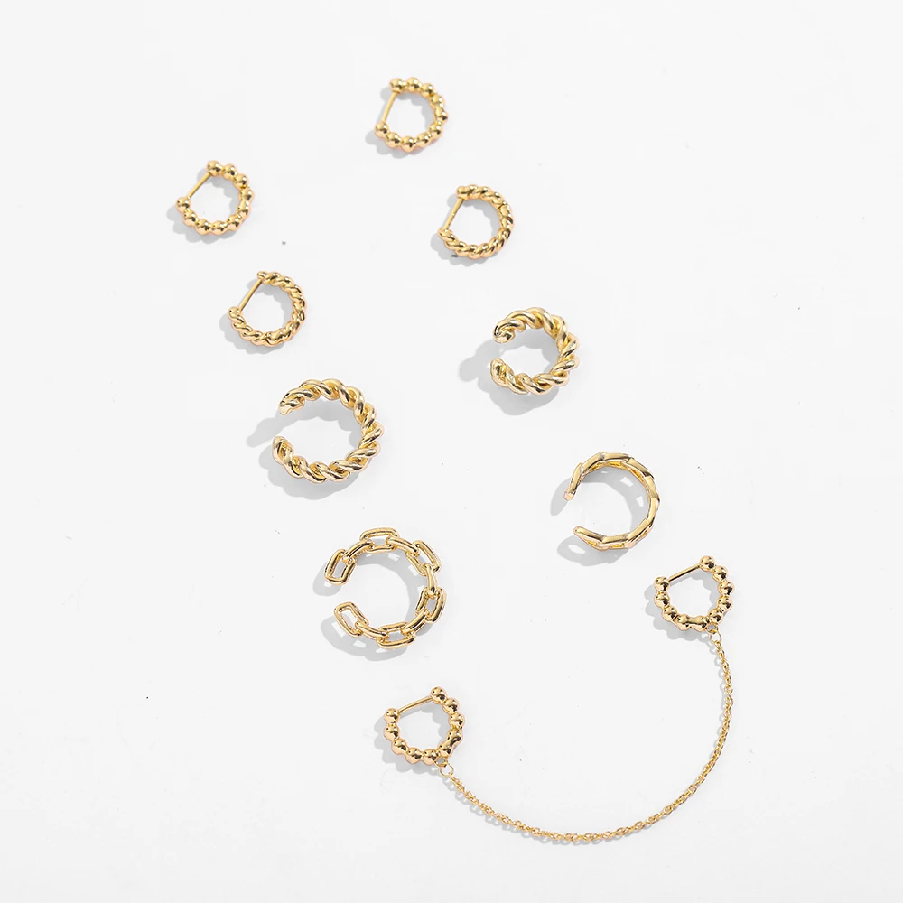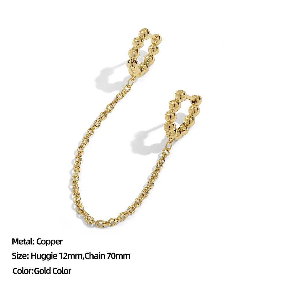 Круглые цепочки, застежка для ушей для женщин, модные золотистые металлические бусины, клипсы для ушей, поворотные маленькие серьги