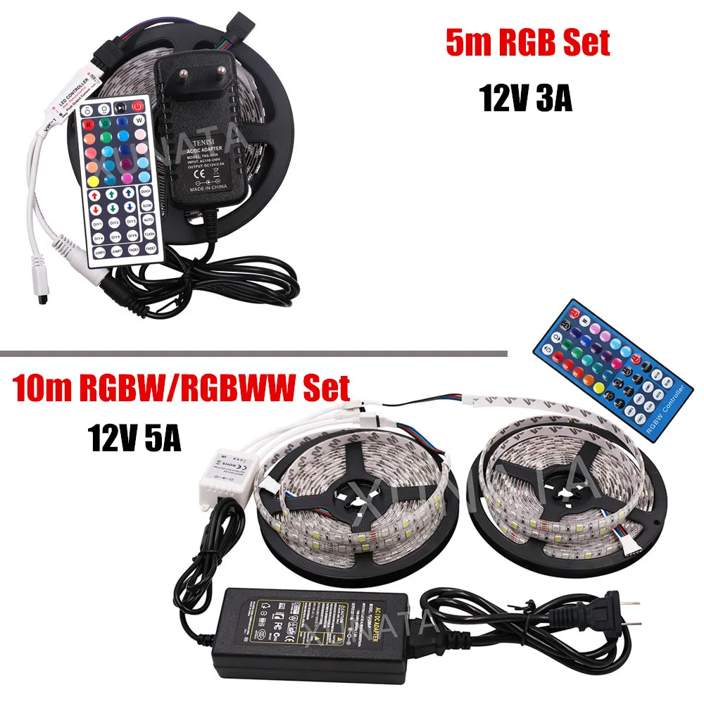 Светодиодная лента, 12 В постоянного тока, с источником питания европейского стандарта, водонепроницаемая светодиодная Светильник та IP21 IP65 RGB RGBW RGBWW 5050, 5 м 10 м