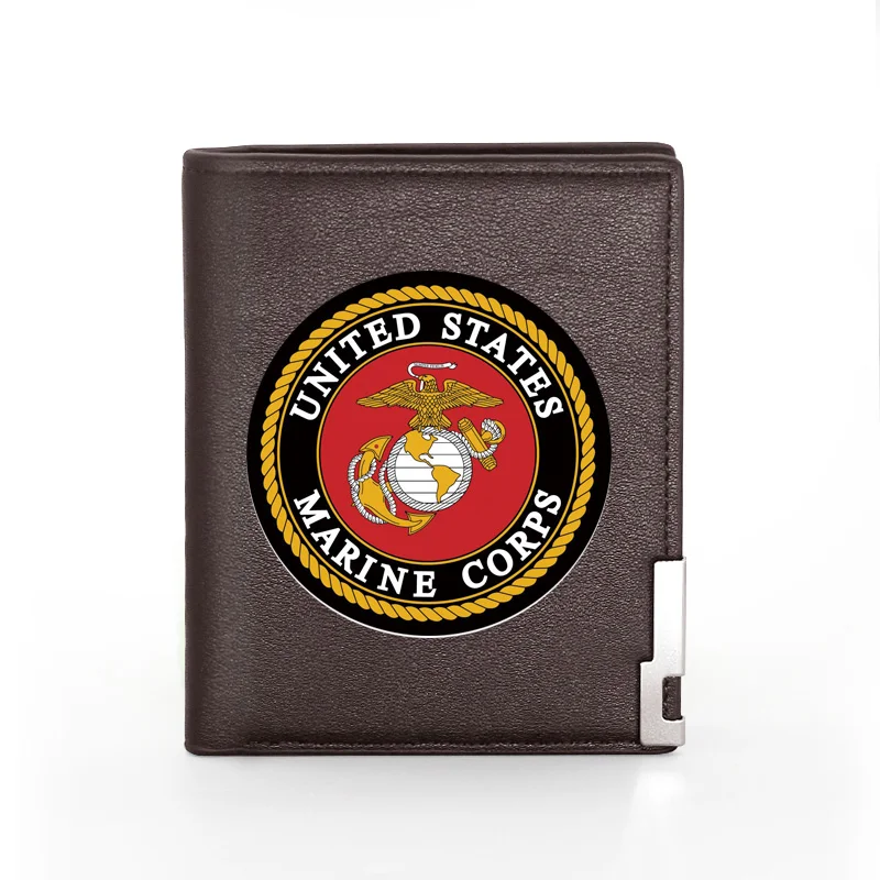 Кожаный кошелек морской пехоты США для мужчин и женщин, короткий тонкий бумажник с кредитницей и монетницей