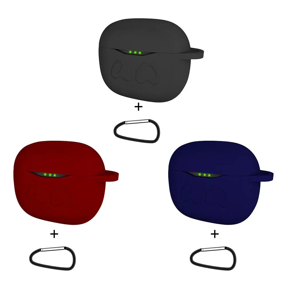 Материал: экологически чистый силиконЦвет: черный/красный/синийВес: около 40 гРазмер посылка: около 3,4x2,2x1,4 смУпаковочный лист:1 * защитный чехол (устройство беспроводной гарнитуры для JBL Tune T120TWS не входит в комплект)1 * металлический карабин