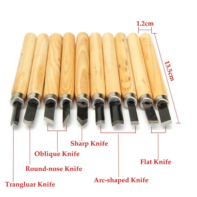 Набор инструментов из 10 предметов, ручное долото для резьбы по дереву, Плотники из высокоуглеродистой стали, долото для дерева с деревянной ручкой