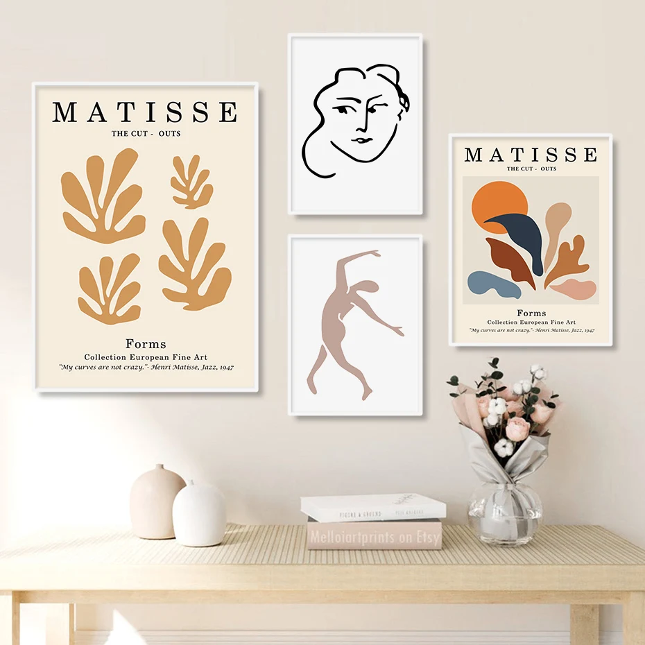 Трендовый абстрактный силуэт Матисс бежевый цветочный постер картины на холсте художественные принты на стену декор для интерьера дома гостиной