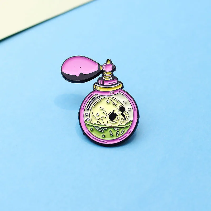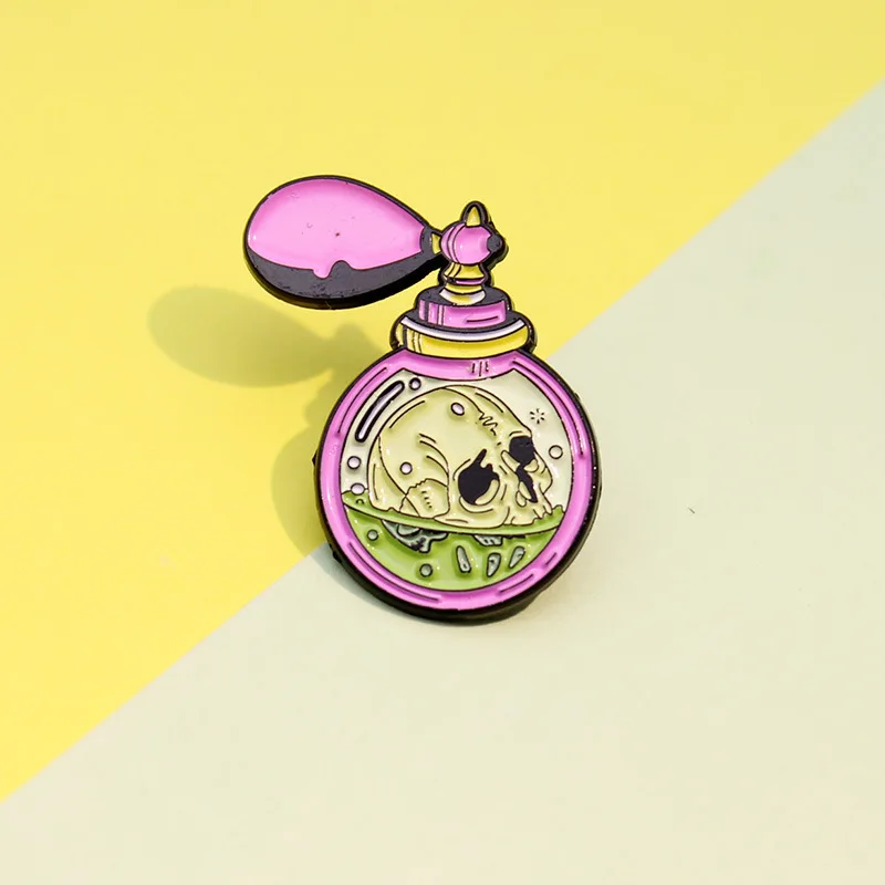 Эмалированная брошь в стиле ретро, с розовым черепом, духами, ядови...