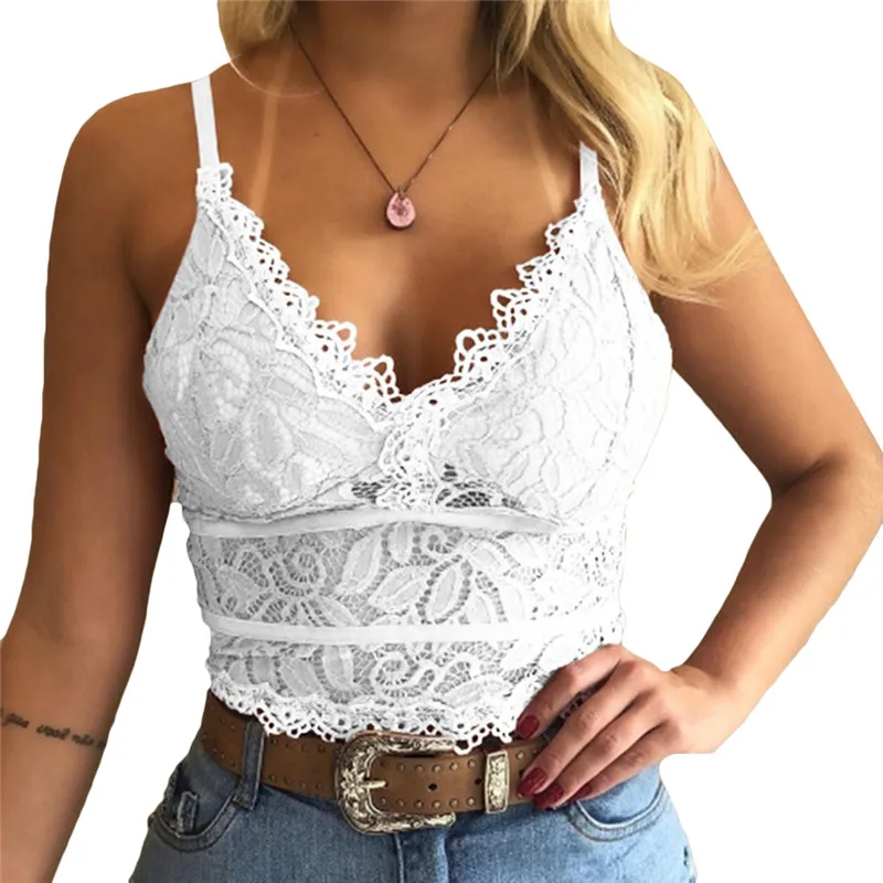 Топ женский кружевной на бретелях, элегантный повседневный однотонный топ с глубоким V-образным вырезом, на лето