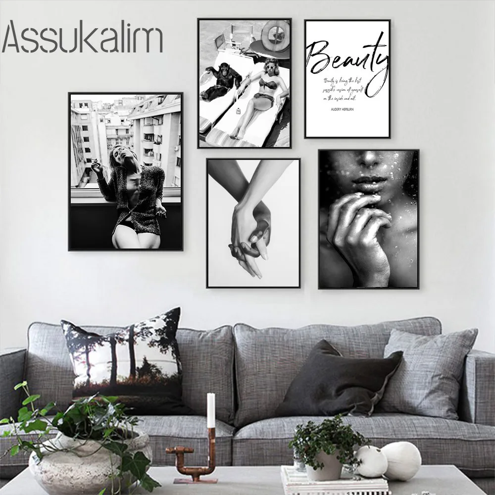 Черно-белая картина, Модные леопардовые плакаты, сексуальный постер...