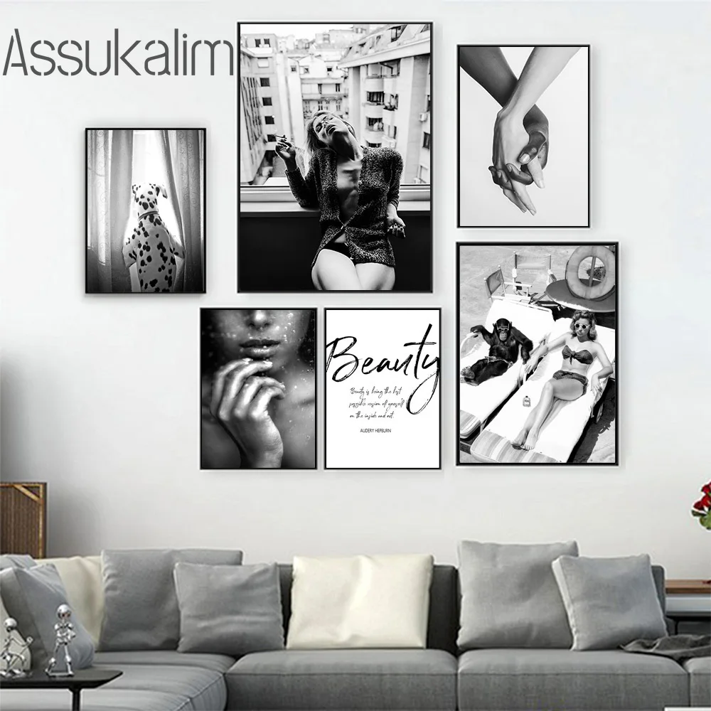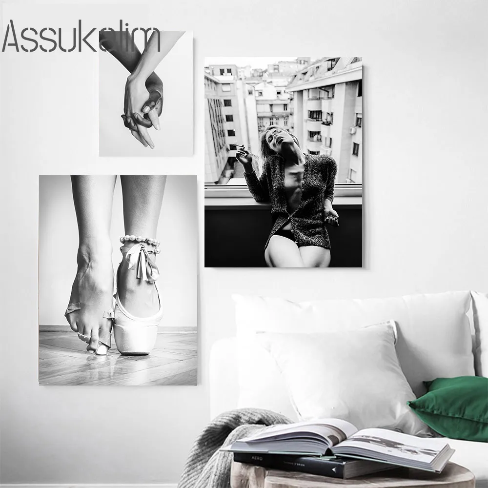 Плакат рука об руку, черно-белый холст, картина, сексуальная девушка, настенный художественный принт, модный плакат, картины для украшения гостиной