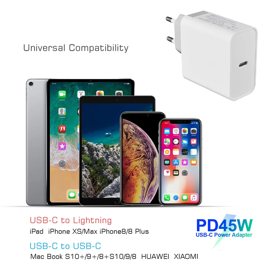Зарядное устройство UTBVO с разъемом USB Type-C, 45 Вт, адаптер питания для iPhone 12, MacBook, Dell Xps 15 13, iPad Pro 2018, Nintendo Switch