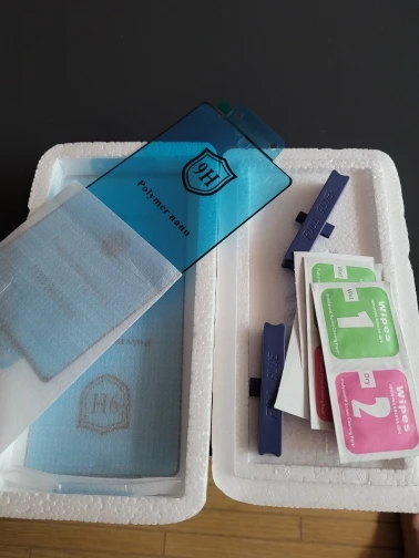 Пленка выглядит призентабельно и на вид очень качественно. Один недостаток- упаковка. Продавец сложил в не глубокий пенопластовый контейнер и на одной из пленок остались следы от пластиковых направляющих. Надеюсь что гидрогель расправится.