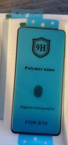 пленка не по размеру, уменьшает размеры экрана. Ну и по мне через чур матовая (шершавая), чувствуется зернистость на экране. Плохо приклеилась по изгибу .ТАк что ищите без рамок они закрывают часть экрана по периметру что мне не нравится. На s10 вообще нет выреза под камеру, придется выполнять работу за продавца вырезать отверстие под камеру.