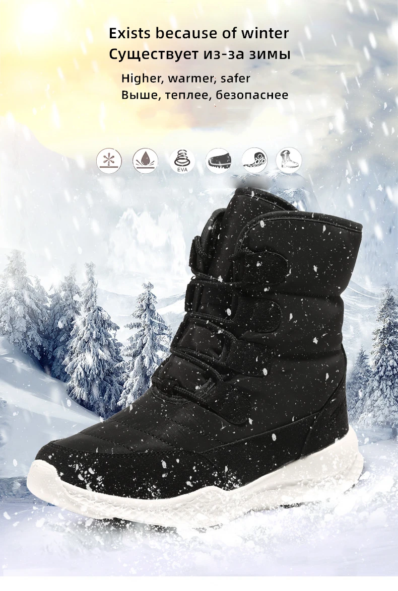 Женские зимние ботинки из плотной кожи, водонепроницаемые Нескользящие ботинки большого размера
