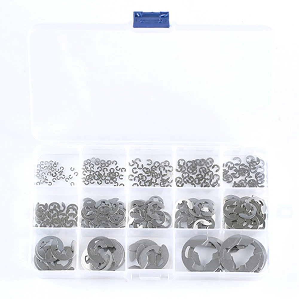 290 шт. E клип 1,2-15 мм 304 Нержавеющая сталь Внешнее удерживающее кольцо зажим Circlip комплект шайб в ассортименте