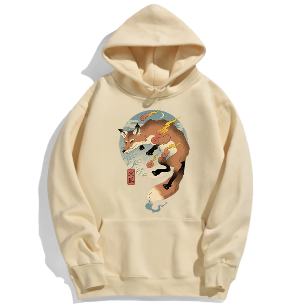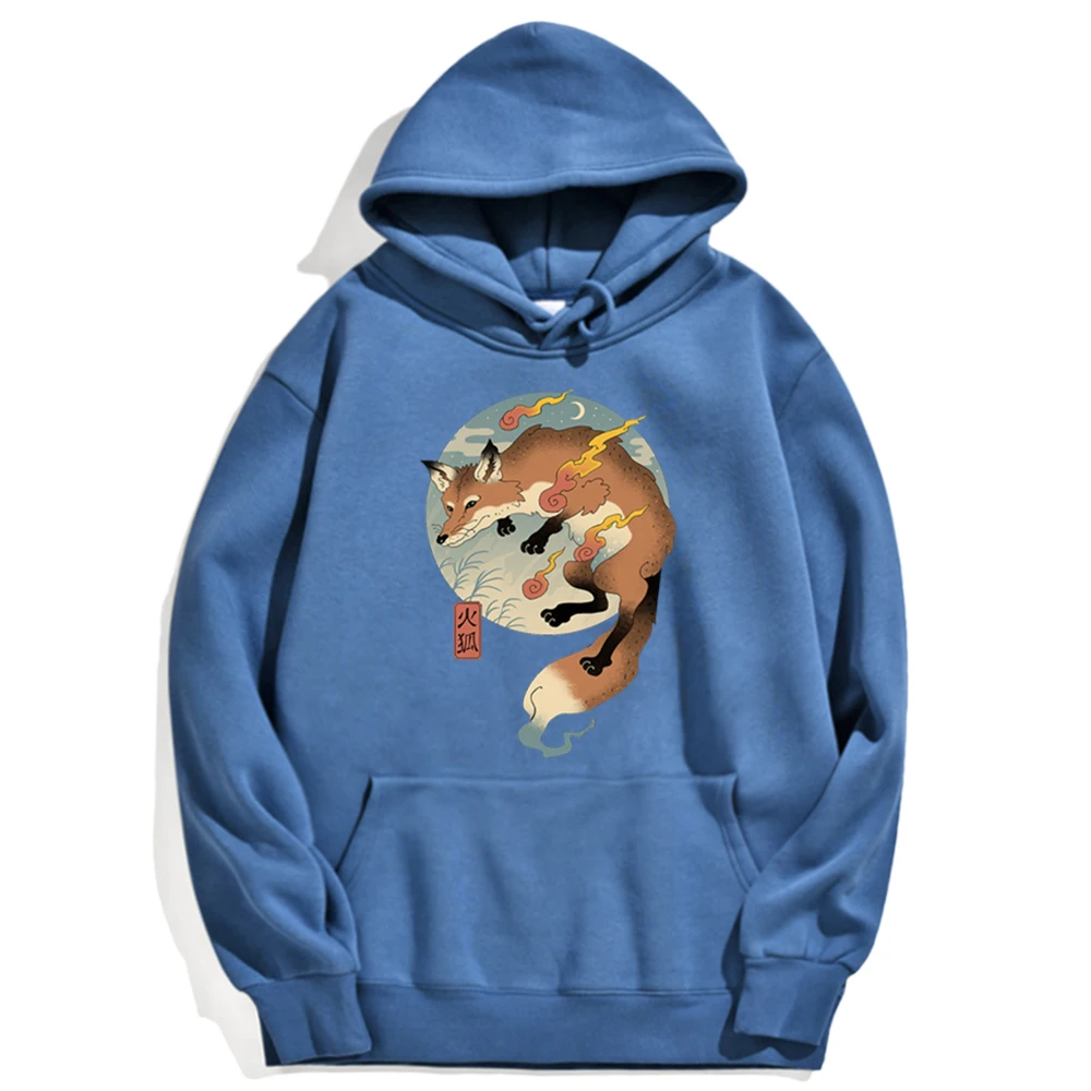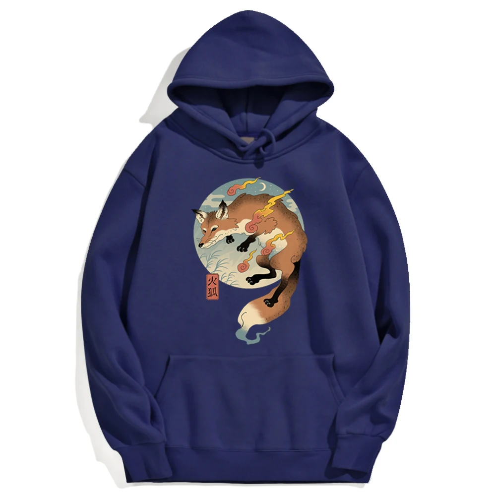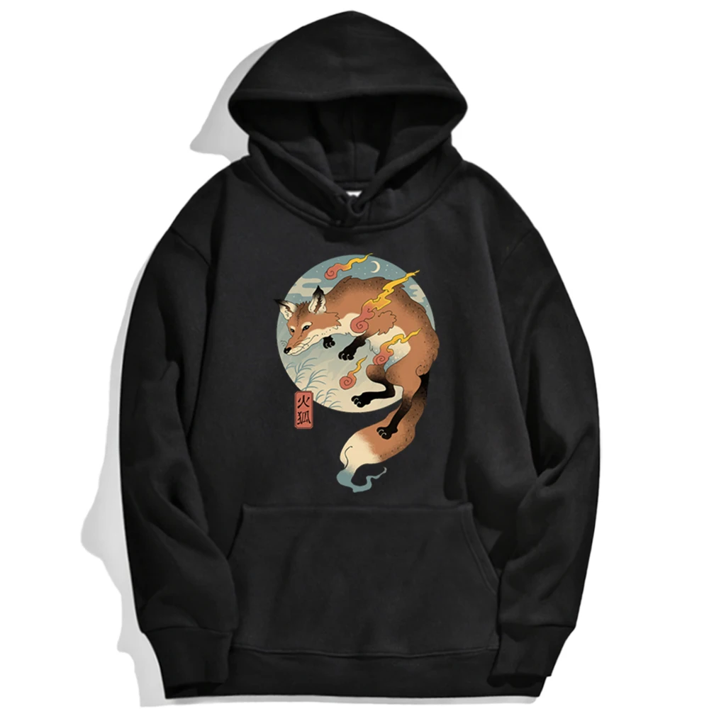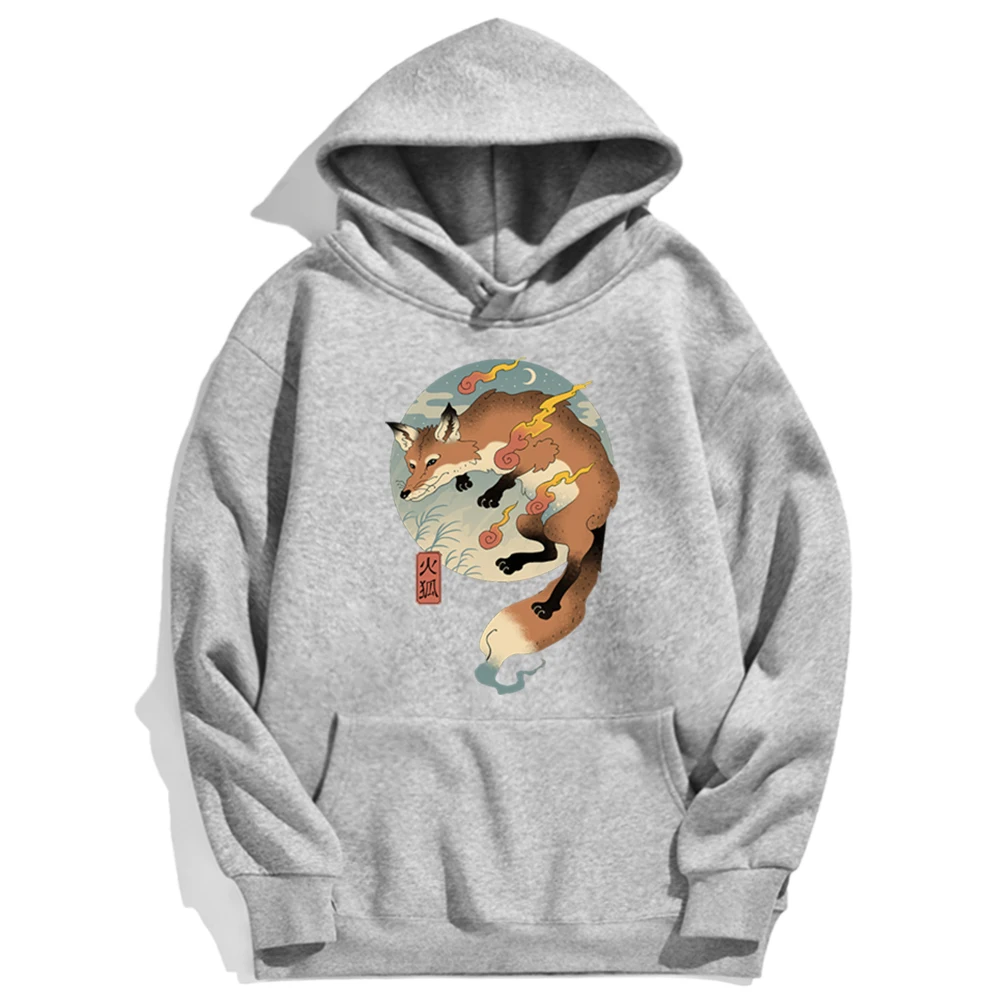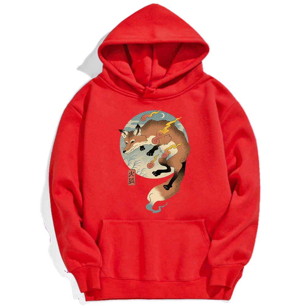 Толстовка с капюшоном Fire Fox Мужская, модная уличная одежда в японском стиле, удобные пуловеры для мужчин