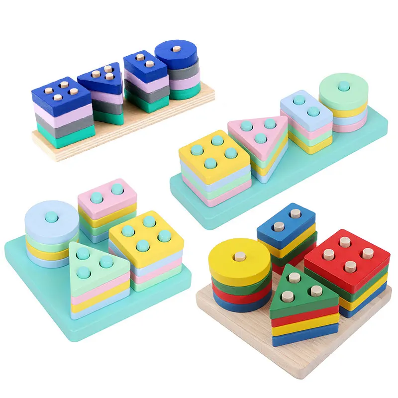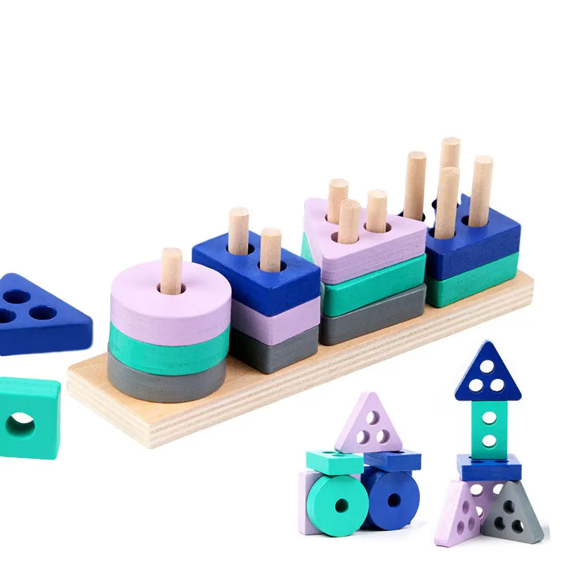 Детские игрушки, деревянные строительные блоки, геометрическая форм...
