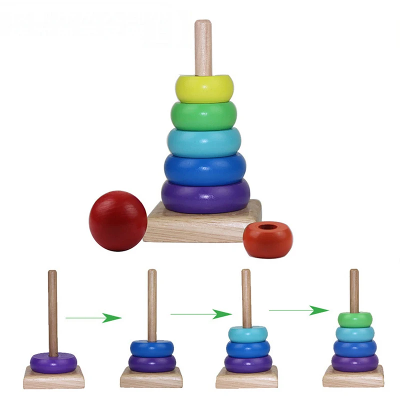 Деревянные штабелируемые кольца для детей, радужные геометрические ...