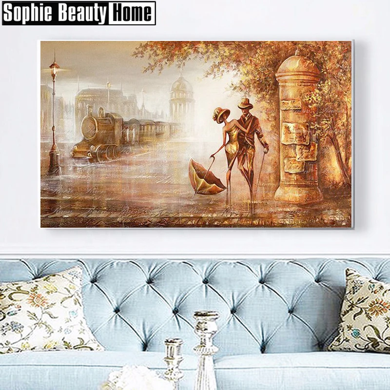 Ретро зонт для влюбленных полный квадраткруглый 5d Diy Алмазная вышивка поезд романтические пары большой художественный алмаз живопись 20A017