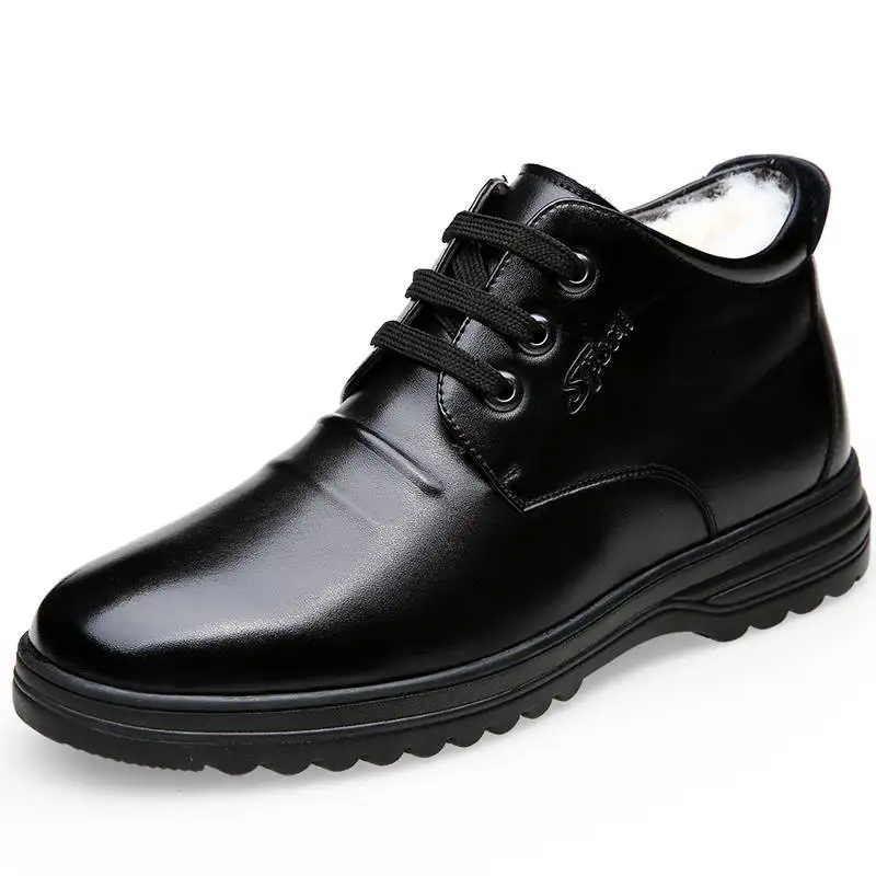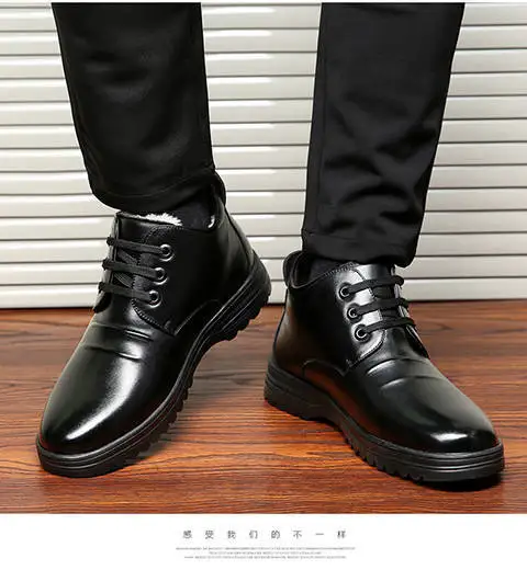 Мужские зимние водонепроницаемые кожаные туфли, фланелевые высокие ...