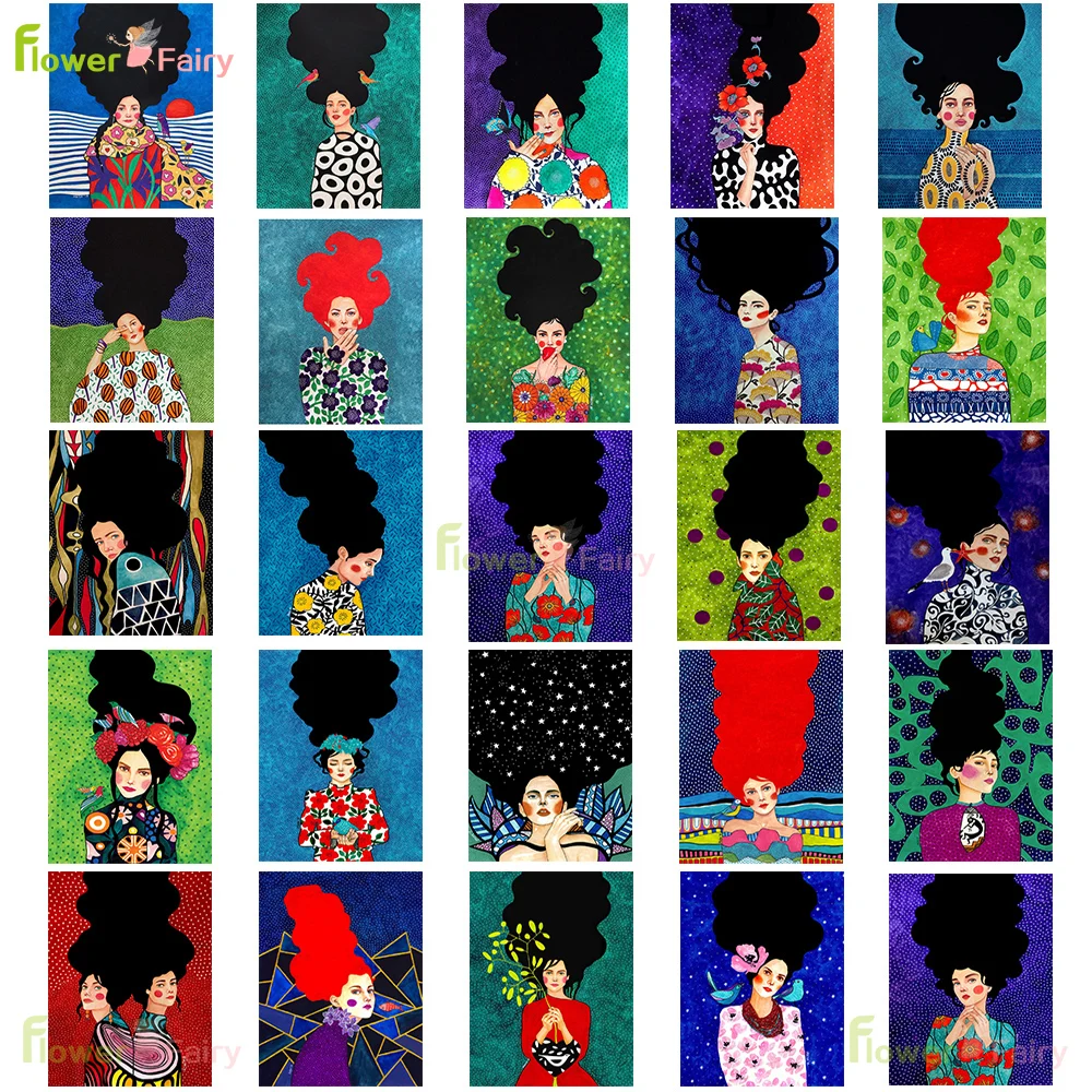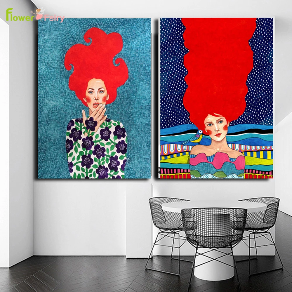 Модная Картина на холсте с красочными волосами для девушек, ретро постер в скандинавском стиле для женщин, настенные картины для гостиной без рамки