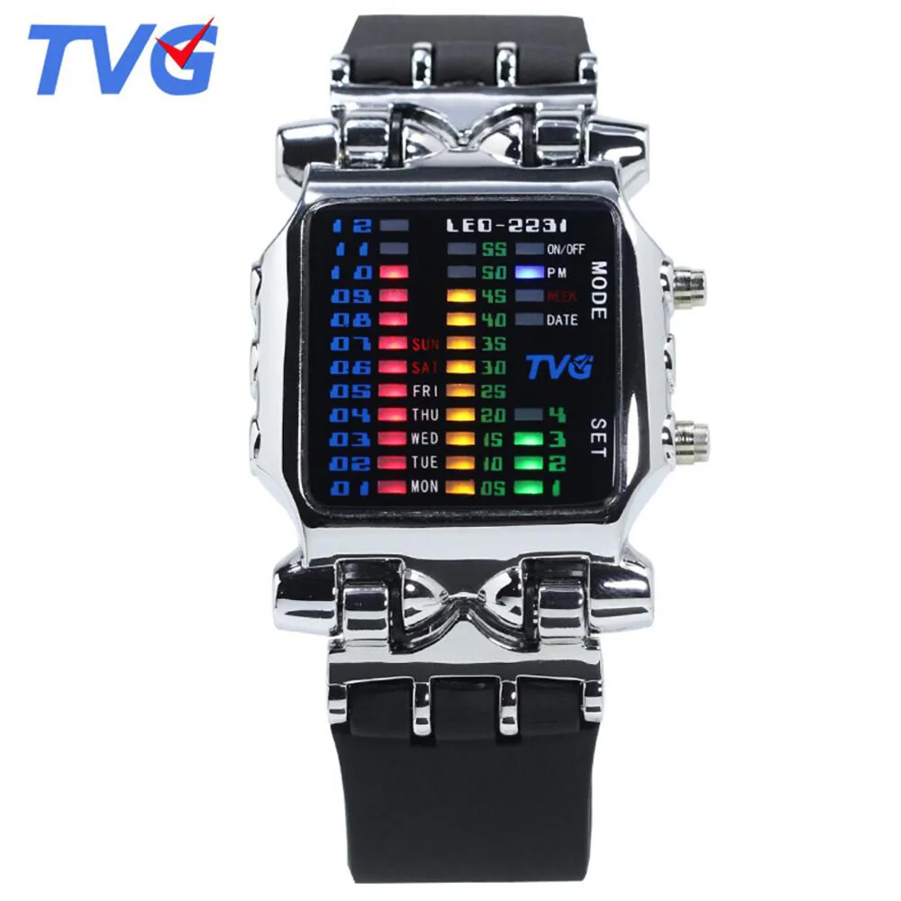 Часы наручные TVG мужские электронные, модные спортивные светодиодные цифровые с квадратным циферблатом, с резиновым ремешком, 2020