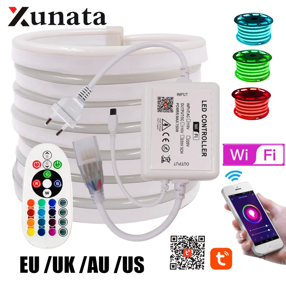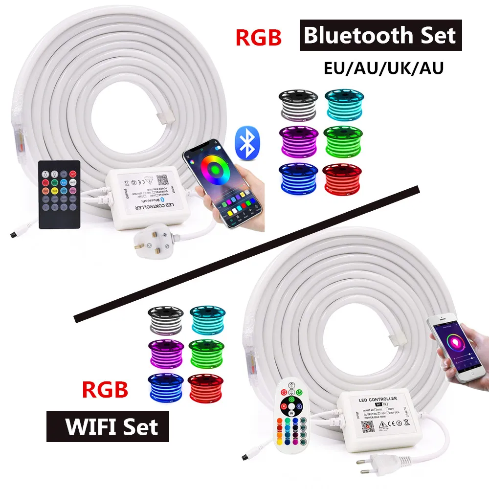 WIFI Bluetooth Control RGB неоновая полоса света лампа 5050 2835 белыйтеплый белый гибкий светодиодный неоновый шнур ЕС Великобритания Австралия 220 В США 110 В