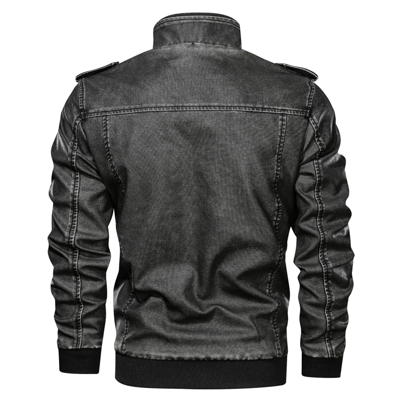 Мужская мотоциклетная куртка из ПУ кожи, с воротником-стойкой