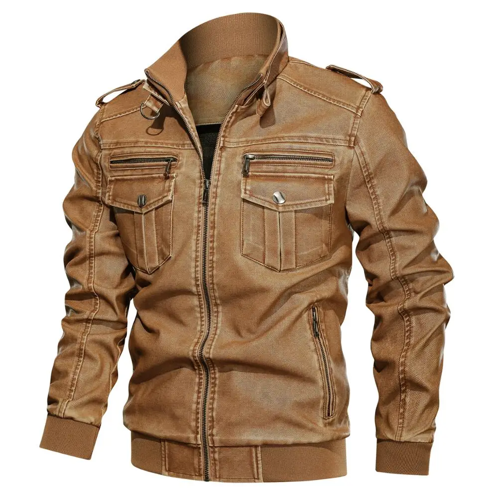 Мужская кожаная куртка-карго, мотоциклетная куртка цвета хаки, курт...